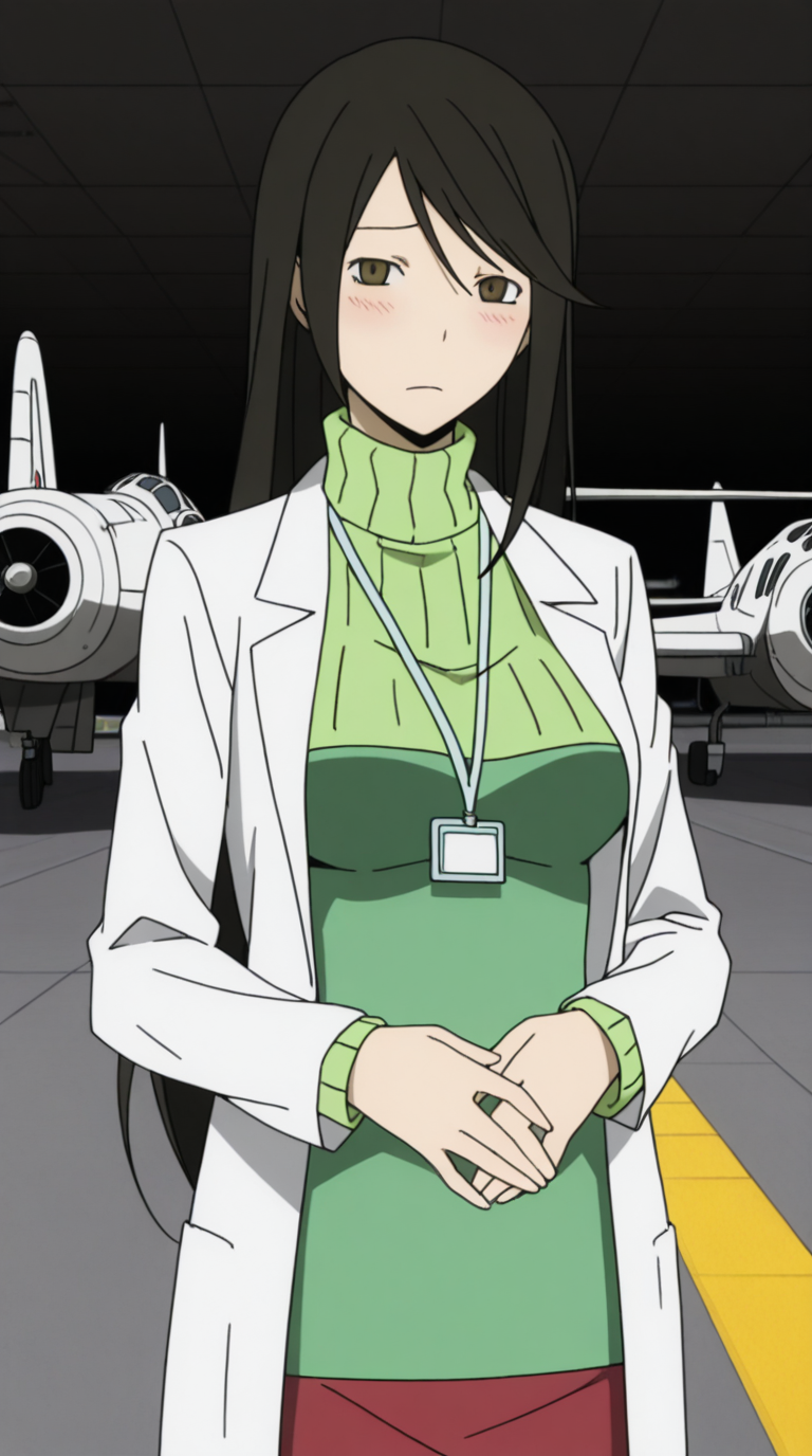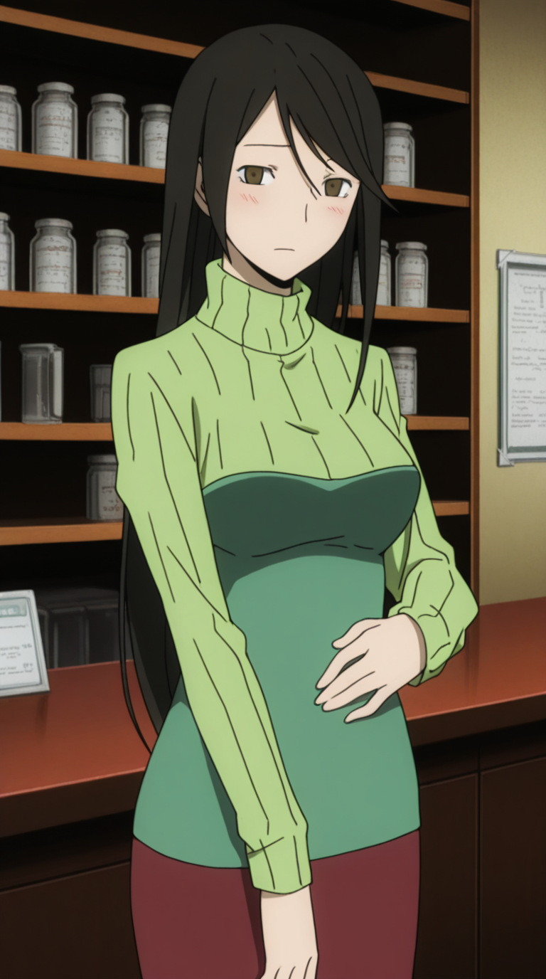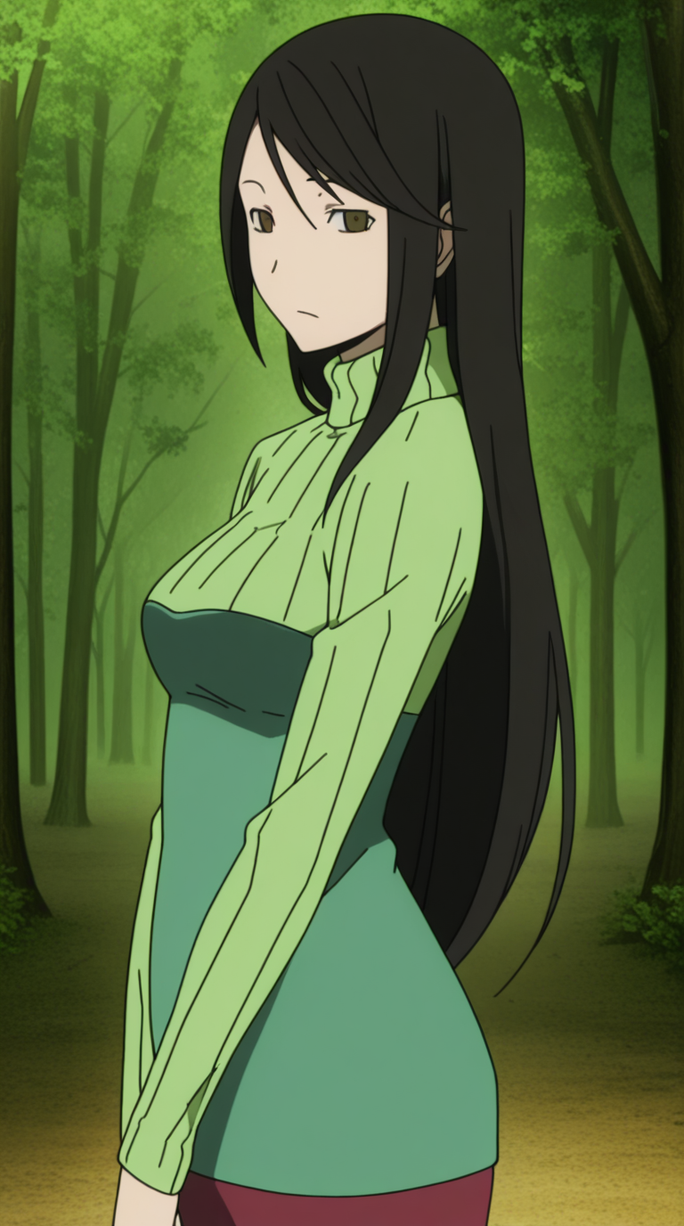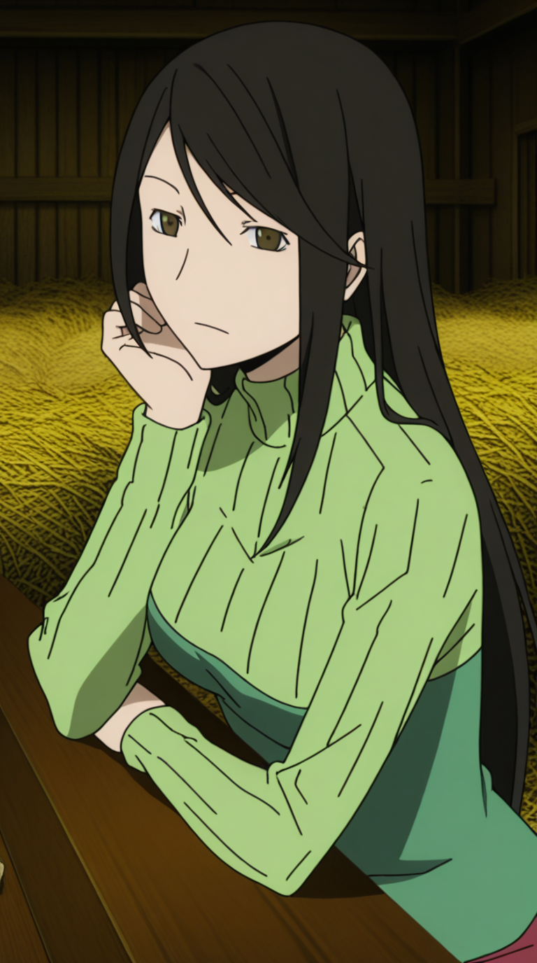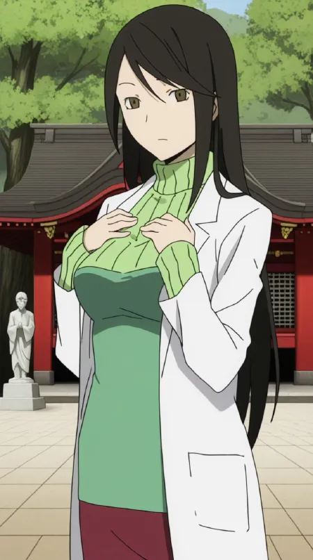 나미에 야기리, 긴 머리, 검은 머리, 갈색 눈, 쓸어올린 앞머리, 성숙한 여성, 중간 크기의 가슴, 애니메이션 스크린캡