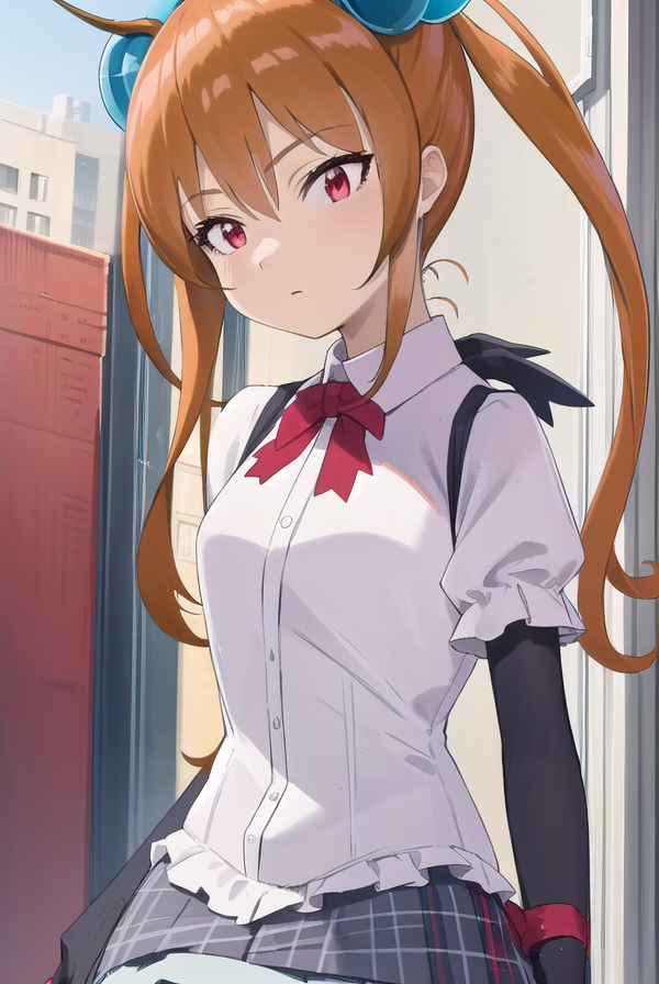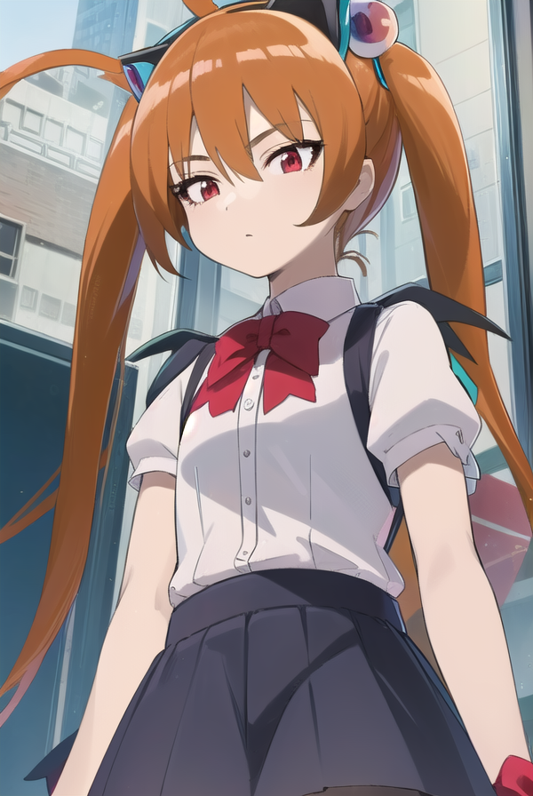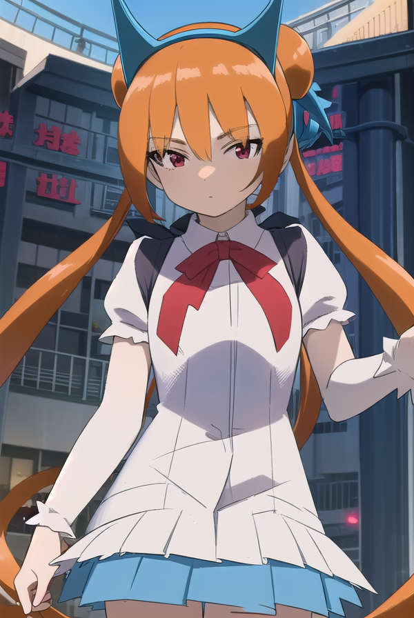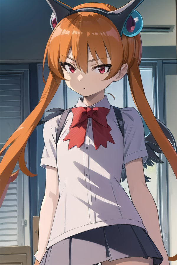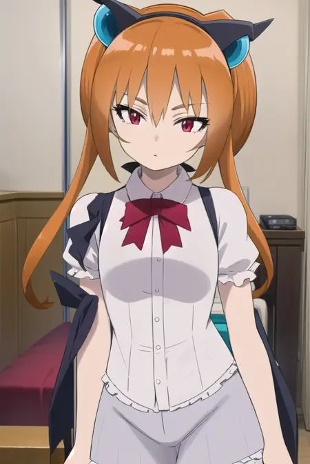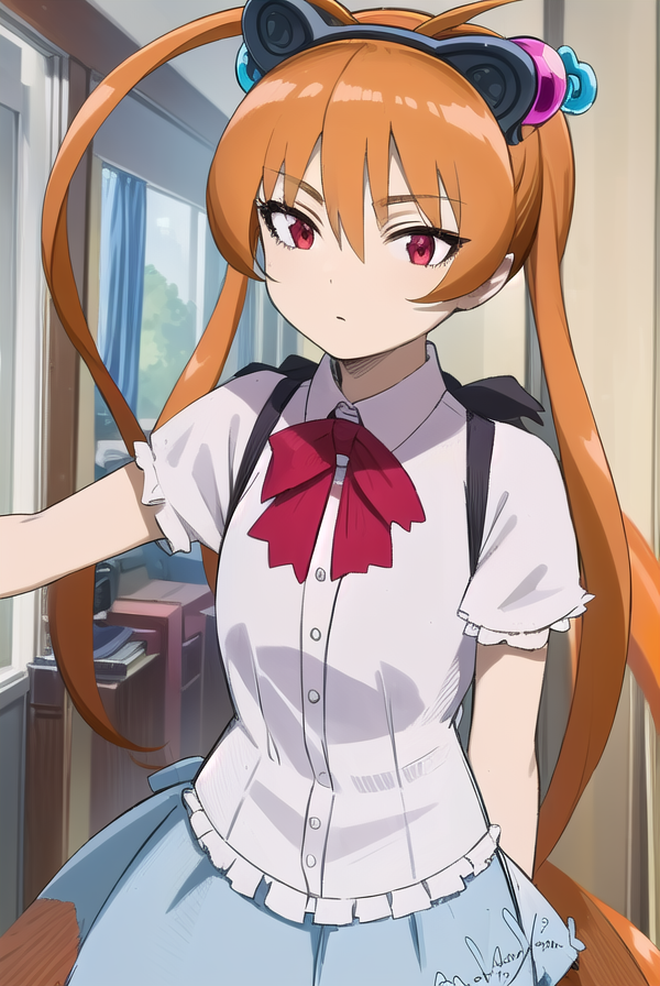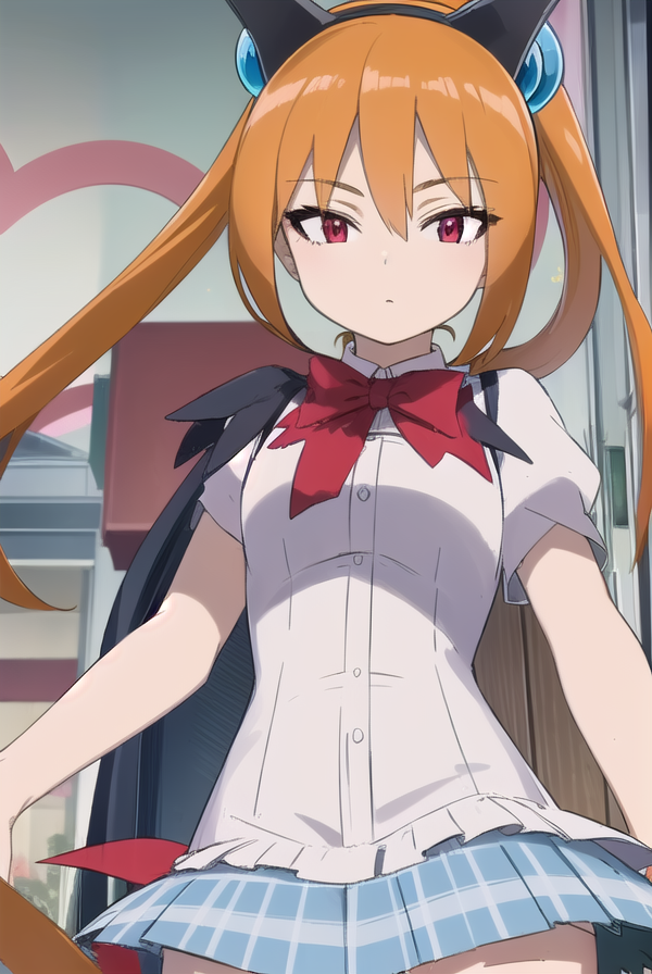 alisa southerncross, 긴 머리, 머리 장식, 동물 귀, 더블 테일, (빨간 눈:1.3), 고양이 귀, 주황색 머리,