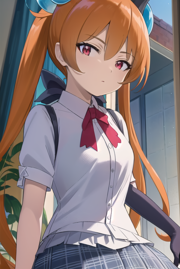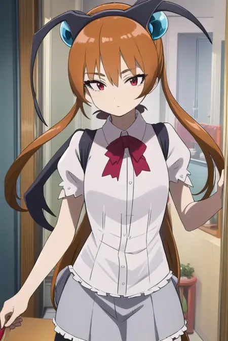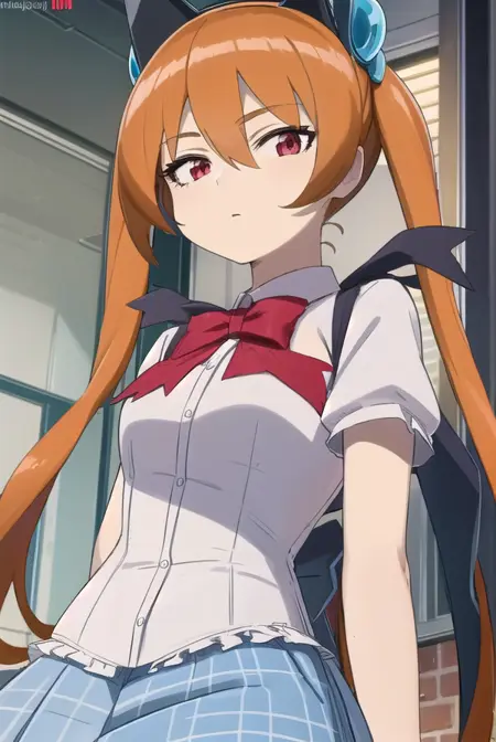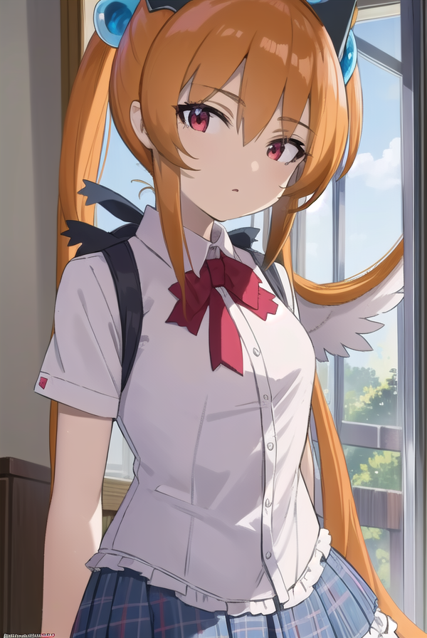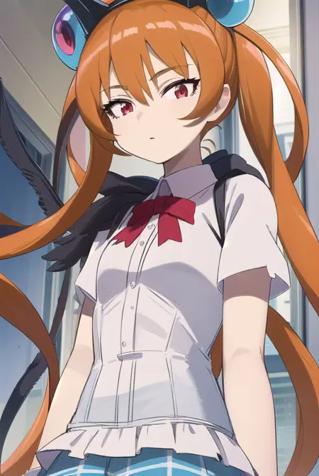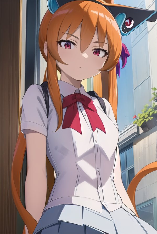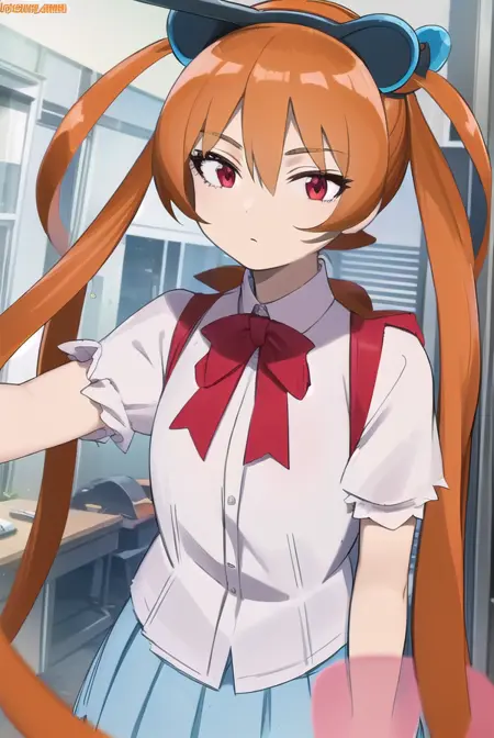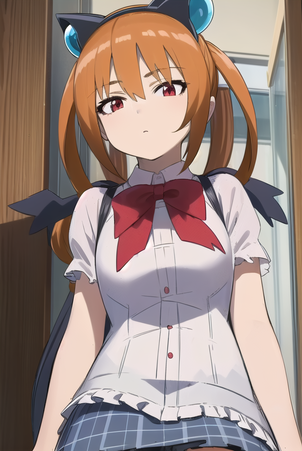 alisa southerncross, 긴 머리, 머리 장식, 동물 귀, 더블 테일, (빨간 눈:1.3), 고양이 귀, 주황색 머리,