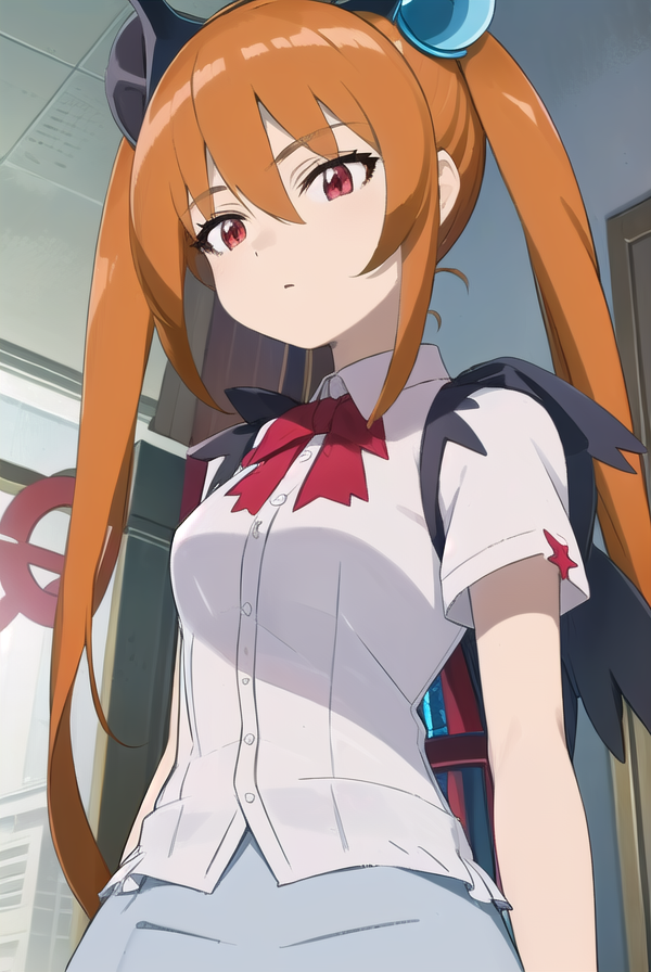 스커트, 셔츠, 리본, 흰색 셔츠, 짧은 소매, 날개,