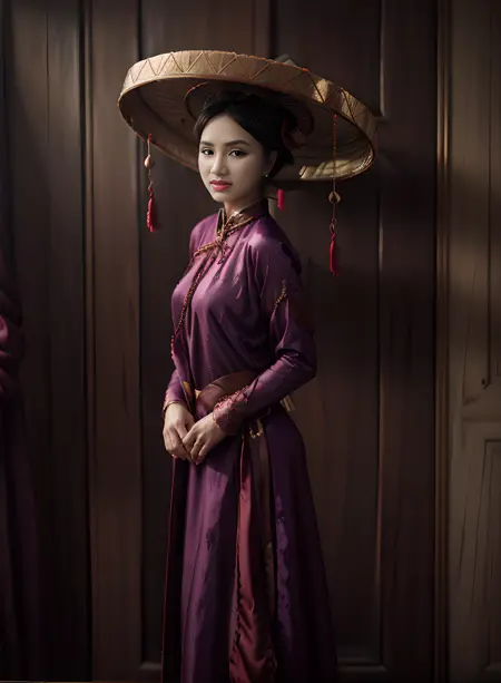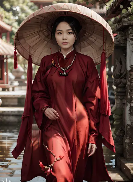 🎬 Inspired by "The Last Wife" movie, I've crafted Lora wide-form áo dài from the Nguyen era, paired with quai thao hats, and set in a dreamy palace backdrop! 🏯😄 Join me on this nostalgic journey back in time, relishing the vintage Vietnamese essence in every design.