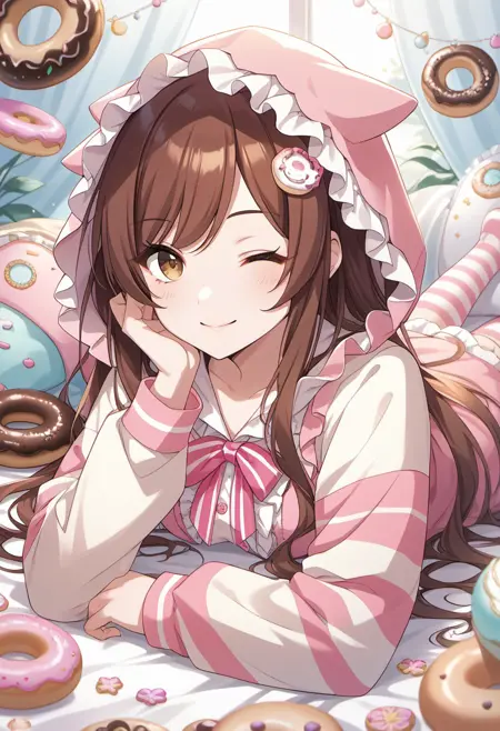 트리거 단어: osaki amana, 긴 머리, 갈색 머리, 헤이즐 눈