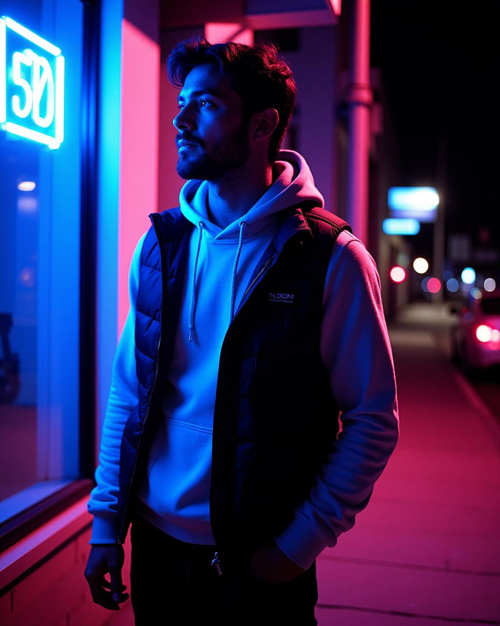 이 LoRA는 깊고 차가운 파란색과 붉은 빛이 나는 네온 분위기를 특징으로 하는 사진을 생성하는 데 도움을 줍니다.