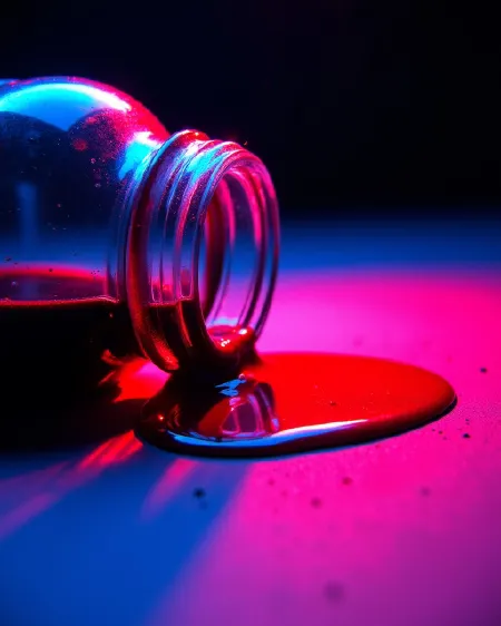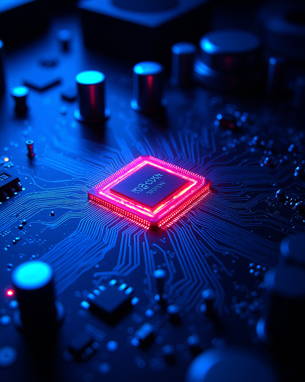 강력한 파란색 톤과 빛나는 붉은 액센트가 있는 사진을 생성합니다.