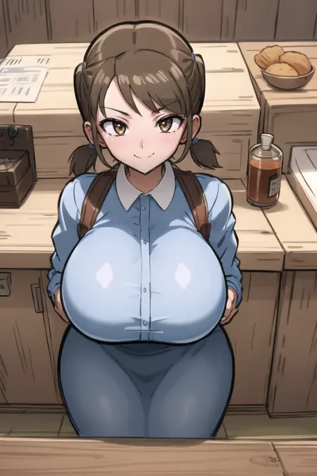 *other than 'huge breasts', I forgot to use these words for example images. but they should bring you closer to the artstyle than what's shown.