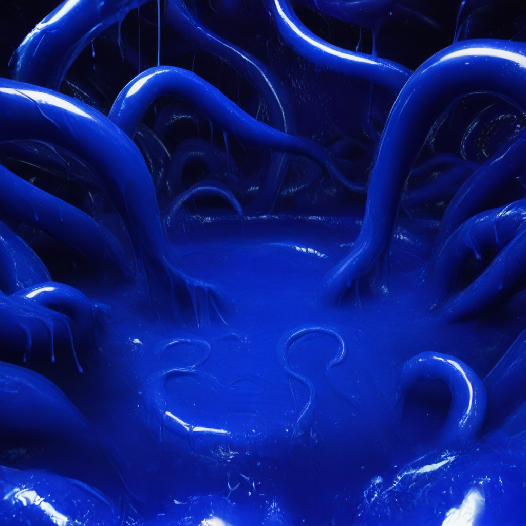 青いスライムの触手は、果てしない異星的な深海藍色のスライムの虚無へとあなたを引き込む——濃厚でツヤのある真夜中の青色の触手が、粘稠で滴るスライムの中を這い回り、亀裂の入った湿った光沢、きらめく反射、破裂する泡、重いドロドロとした滴で覆われている。スタイルは非常に没入的で、超精細かつ完全にNSFW最適化されている:ヌメヌメした質感、エロティックな有機的な絡み合い、異星的なSF的輝き、生きているかのような圧倒的な触手の塊。