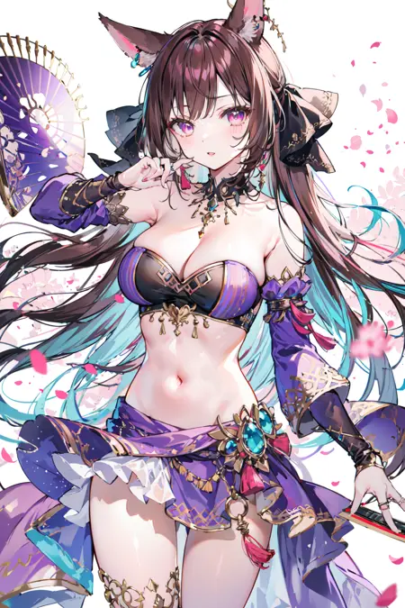 이것은 사실 무희를 주제로 한 모델로, 이국적인 분위기의 무희를 특화하여 묘사하기 위한 것입니다. 저는 이런 요소를 매우 좋아하지만, 2차원 일러스트에서는 이런 주제의 그림이 그리 많지 않아, 결국 P站을 뒤져서 여러 자료를 끼워 맞춰 이 트레이닝 세트를 만들었습니다. 트레이닝 세트 안에 복숭아 이미지가 많아서 스타일이 약간 momoco 풍입니다.