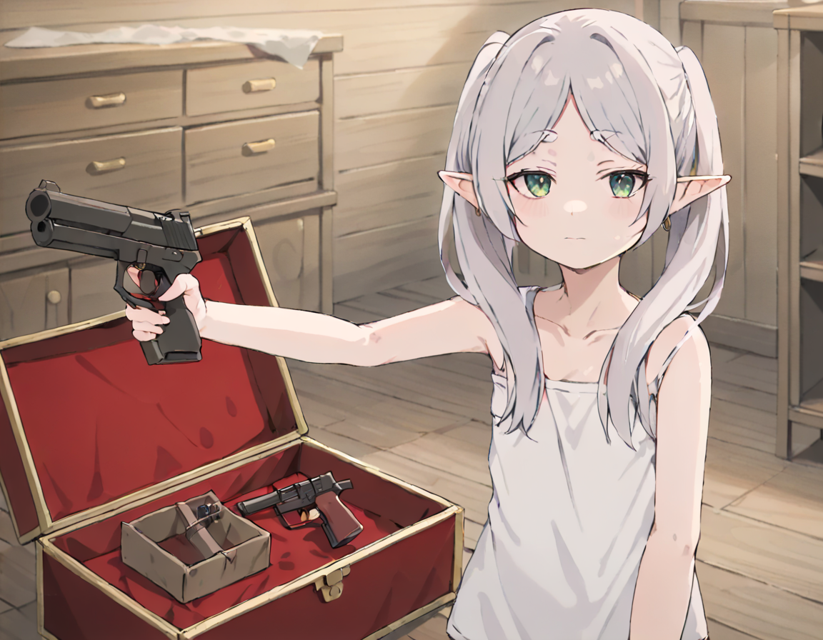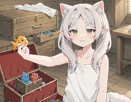 Using this Lora, you can get the famous meme from 'Frieren: Beyond Journey's End' known as 'What Men Want'. However, since I only trained with about a dozen photos, the flexibility is not very high. In most cases, it's women doing cosplay rather than the characters being replaced. The good news is that changing items in hand is very easy.