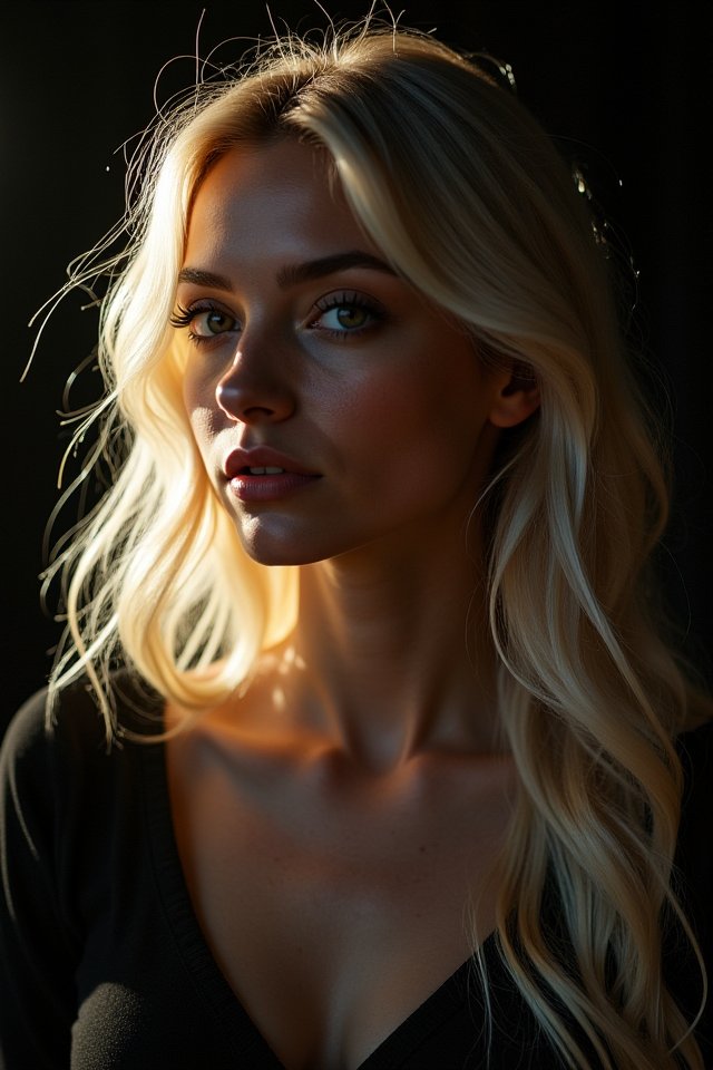 - Validated with prompts like "Chiaroscuro. Deep shadows". The model creates distinct "Light Slices" (hard light transitions) without pixelation on the terminators (the line between light and dark), simulating high-end studio modifiers (Snoot/Barn Doors).
