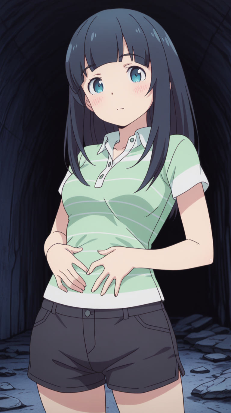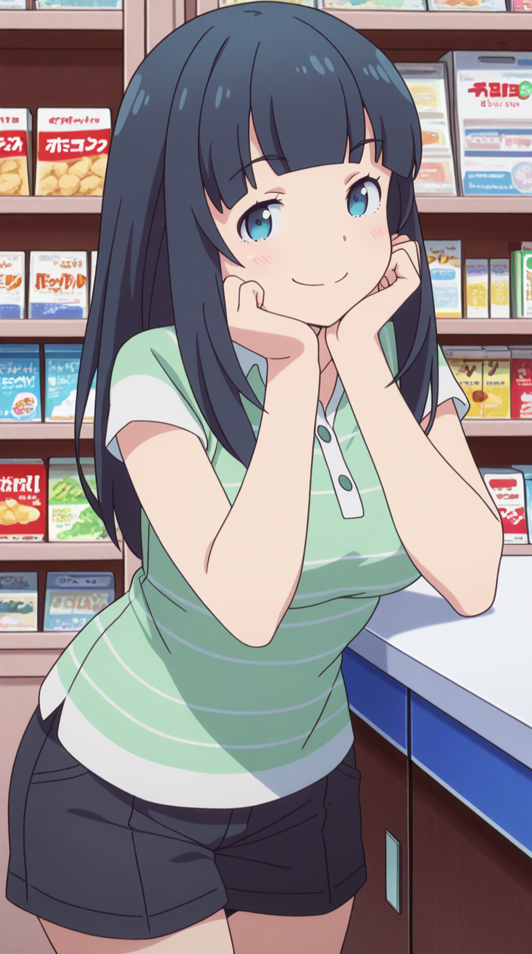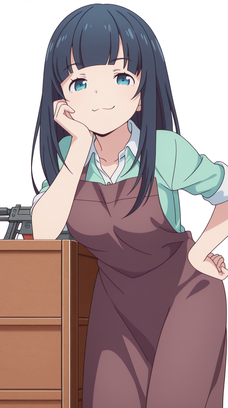 tomoe takasago, long hair, bangs, blue eyes, black hair, blunt bangs, mature female, medium breasts, anime screencap