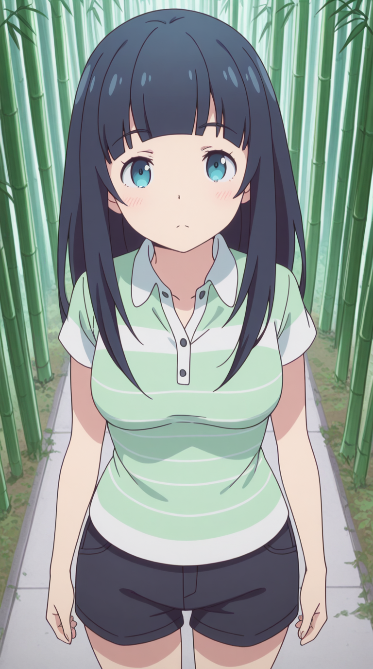 shirt, short sleeves, shorts, striped, collared shirt, black shorts, striped shirt, green shirt,