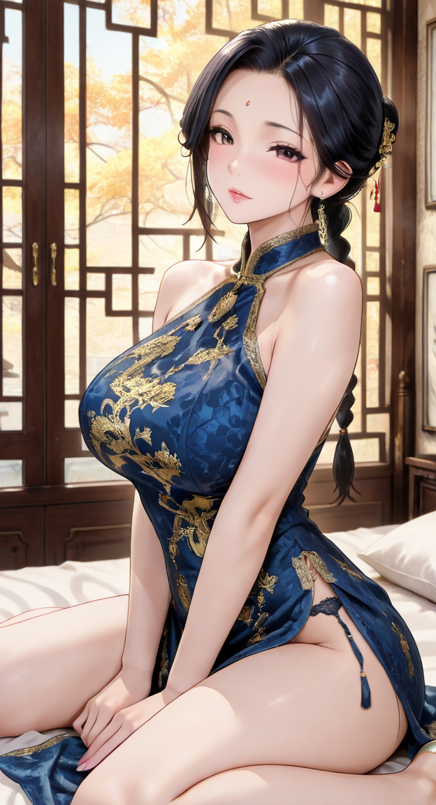 Midnight Gold Embroidery Halter Qipao Dress_IL_v1.0.safetensors
