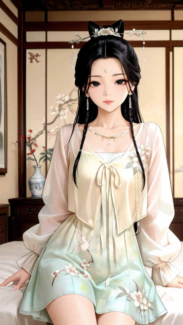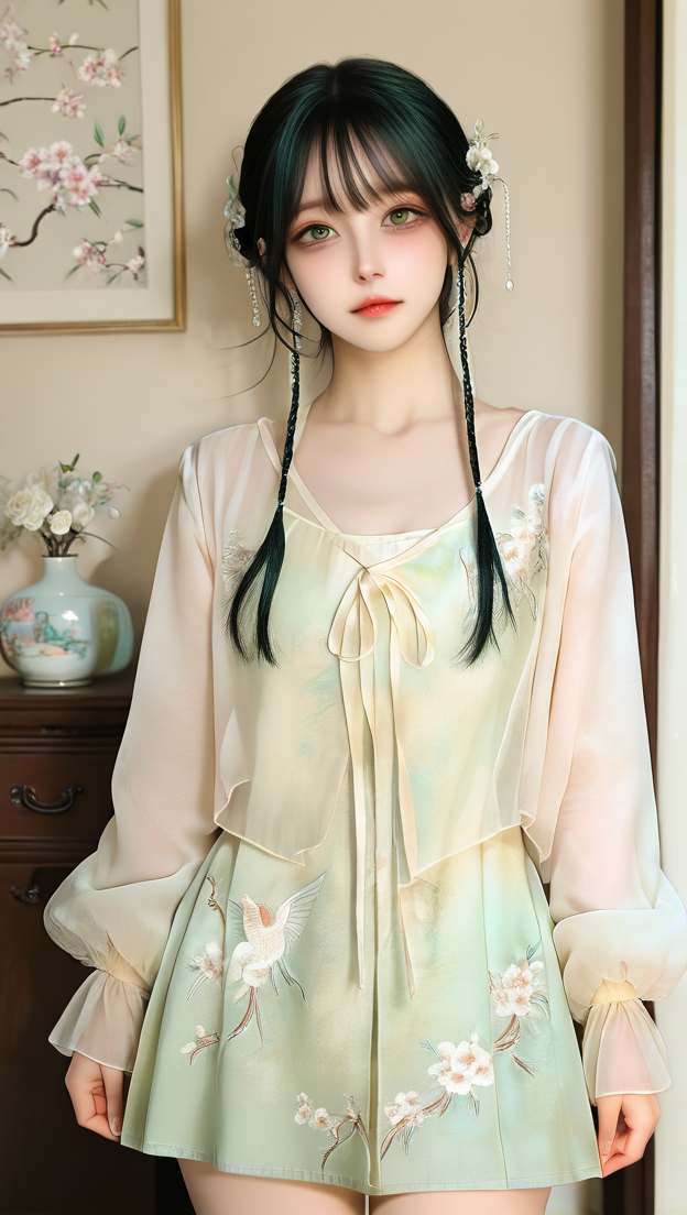 Crane Embroidery Gradient Hanfu-Inspired Dress Set
