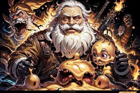 确保你使用像“奶酪”、“黏糊糊”、“黏液”这样的词——否则它会误以为这是一个暴力死亡爆炸的Lora。(我用MidJourney写的提示词可没那么极端)