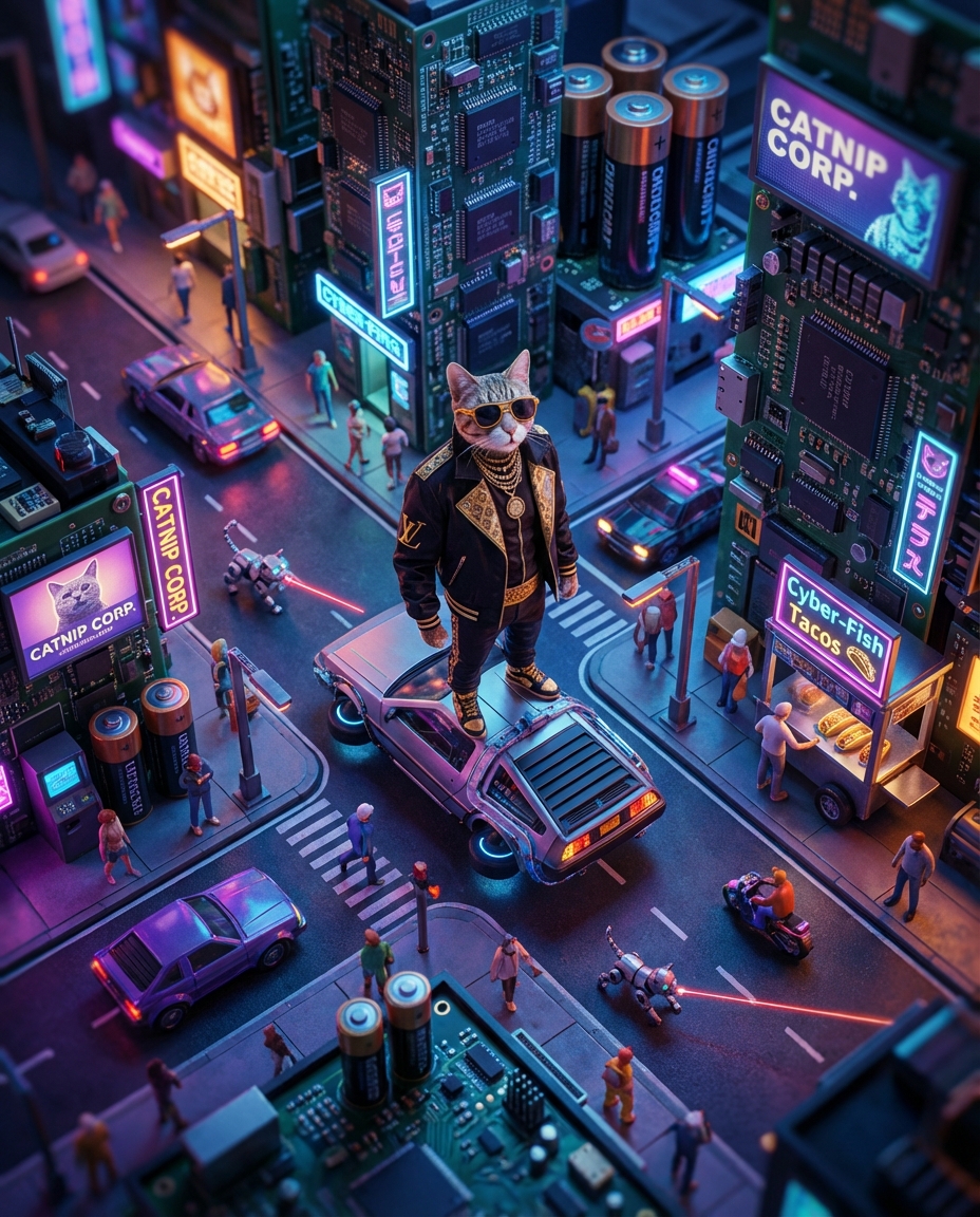 複雑な3Dモデリングは不要です。画像を1枚アップロードするだけで、あなた自身のサイバーパンク風のブラインドボックスの宝物を生成できます。この小さなネオン都市では、すべてがサイバーであり、すべてに魂が宿っています。