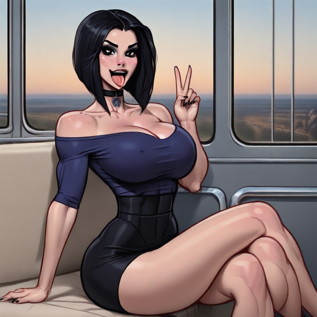 Trigger word is "jEsGoS" and "goth girl,black hair,black eyes,bare forehead,bobcut, mature,dark-skinned female,black lipstick,thick lips,bimbo," is required.