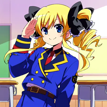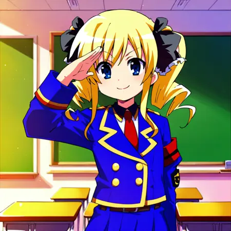 it should work on most NAI models and only the "uniform" tag has her uniform, otherwise any clothing works, even other clothing loras or poses or whatever, have fun xD
