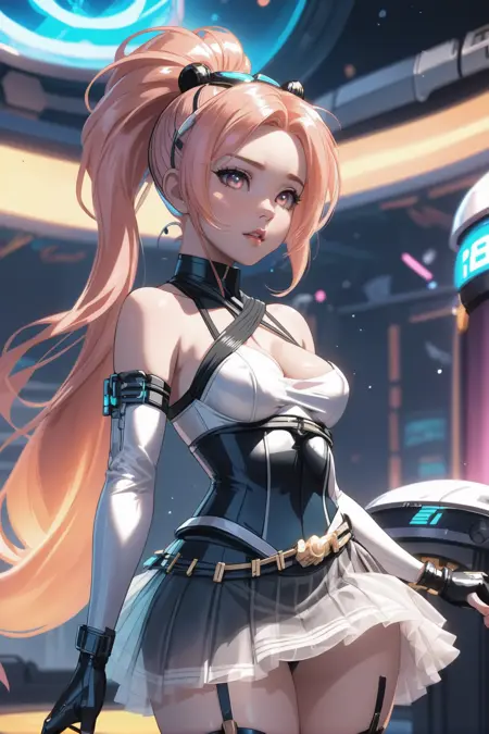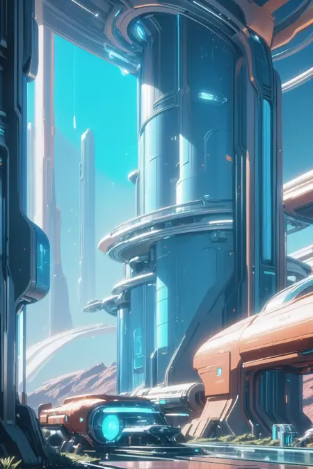 다른 아키텍처/설정 LoRA로, 이 것은 반짝이는 크롬과 파란 유리로 이루어진 날렵한 과학 소설 스타일을 제공합니다. 특정 트리거 단어는 없지만, 다양한 스타일을 얻기 위한 아이디어는 샘플 생성을 확인해 보세요.