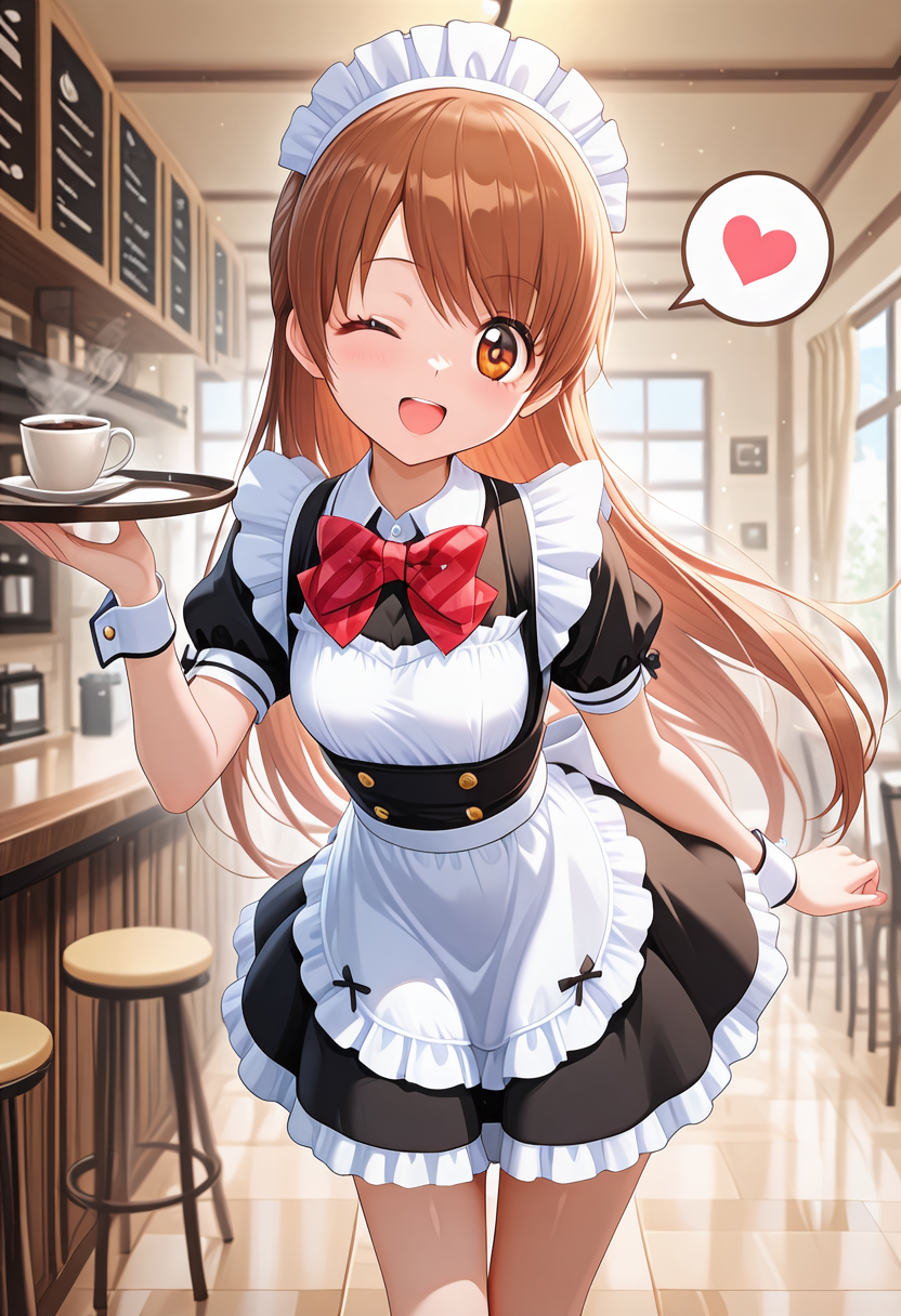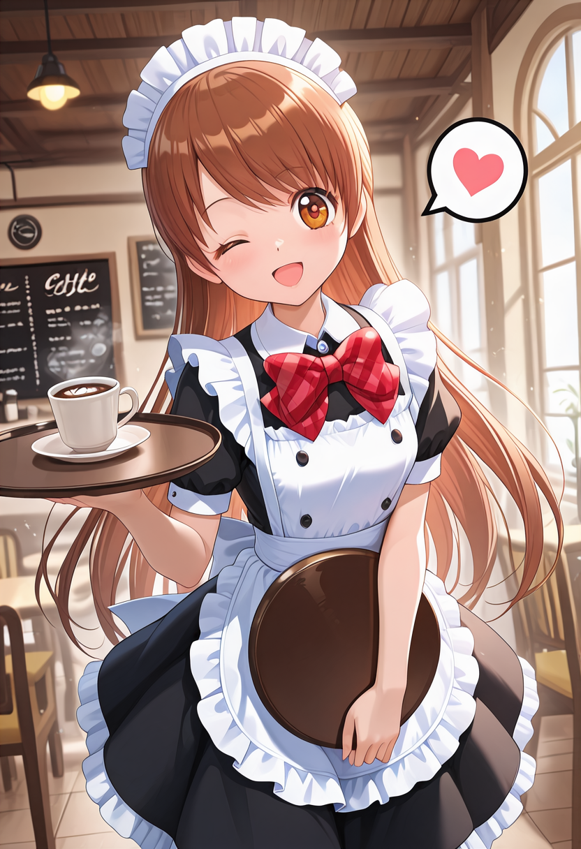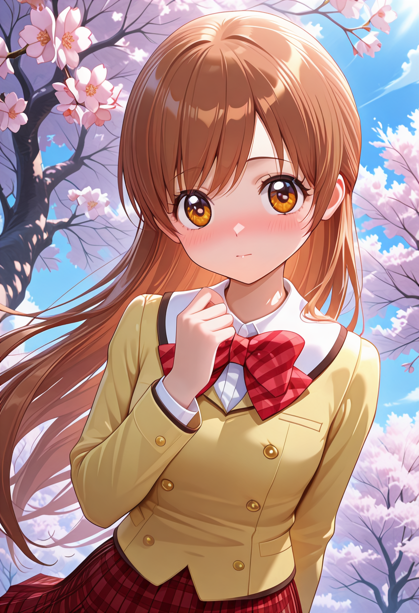 프롬프트: 미미 키타가미, 갈색 머리카락, 갈색 눈, 학교 유니폼, 빨간 치마,