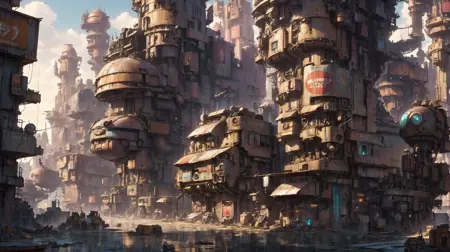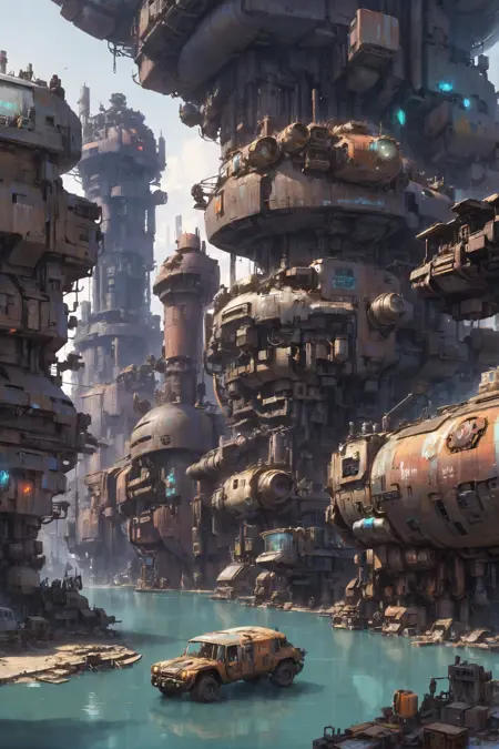This architectural style LoRA turns your generations into a post-apocalyptic world of junk.