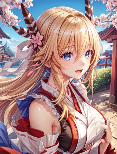 추가로 도움이 될 수 있는 단어: 파란 눈, 금발, 비전통적인 미코
