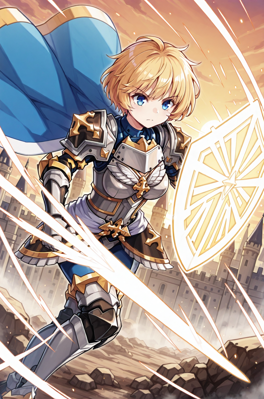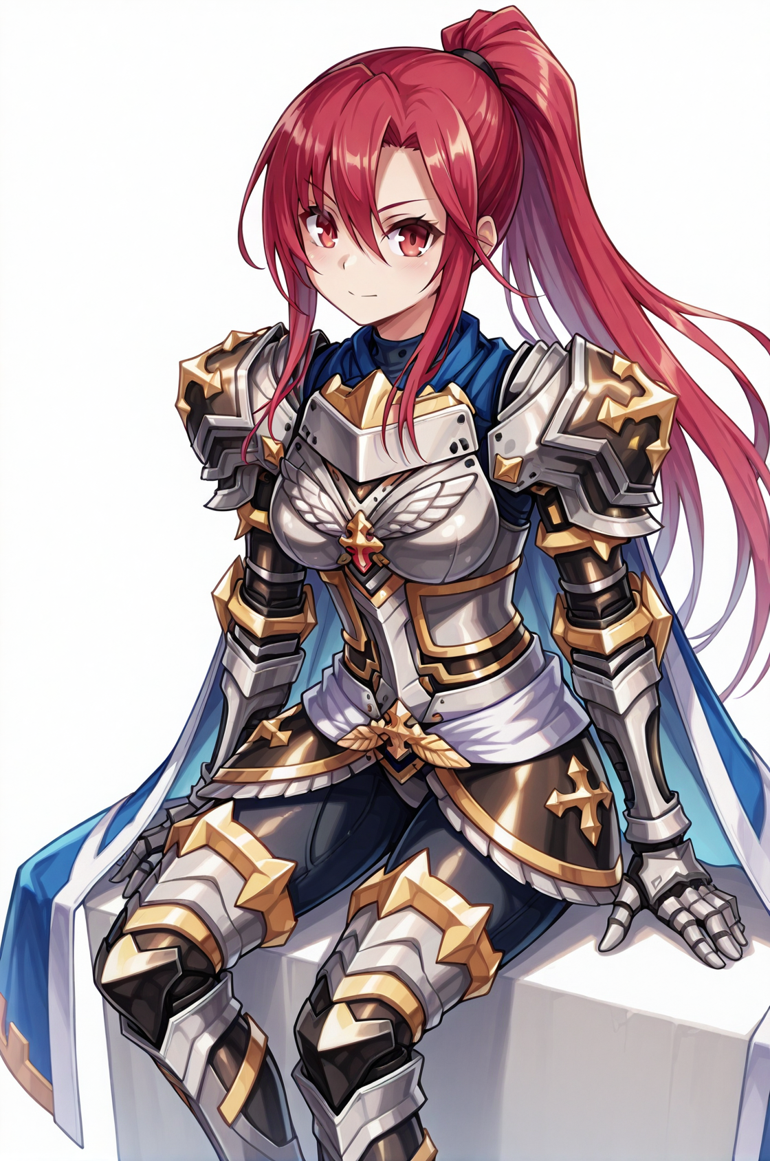 prompt: impRO, armored dress, shoulder armor, cape, gauntlets, faulds, pants, bikini armor, thighhighs, armored thigh boots