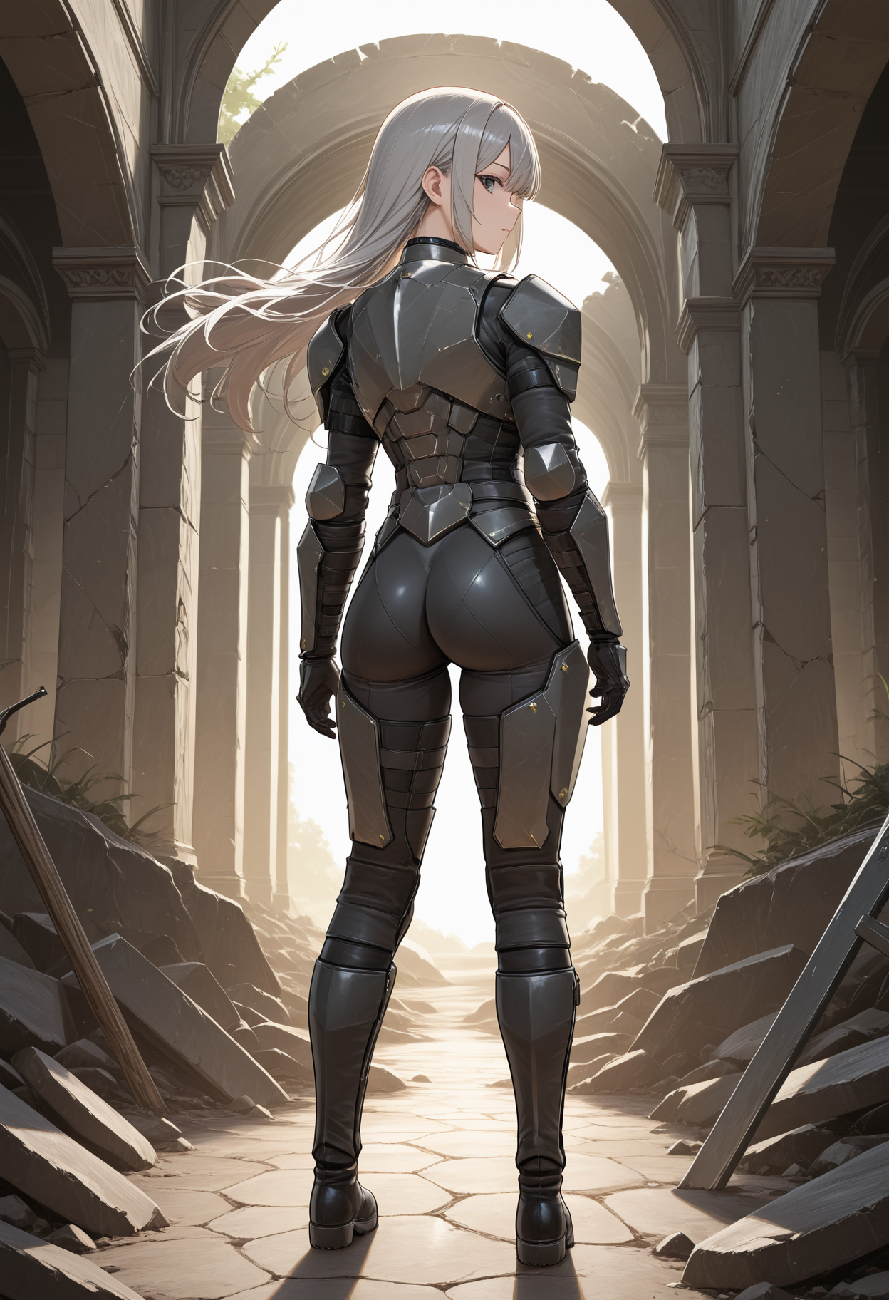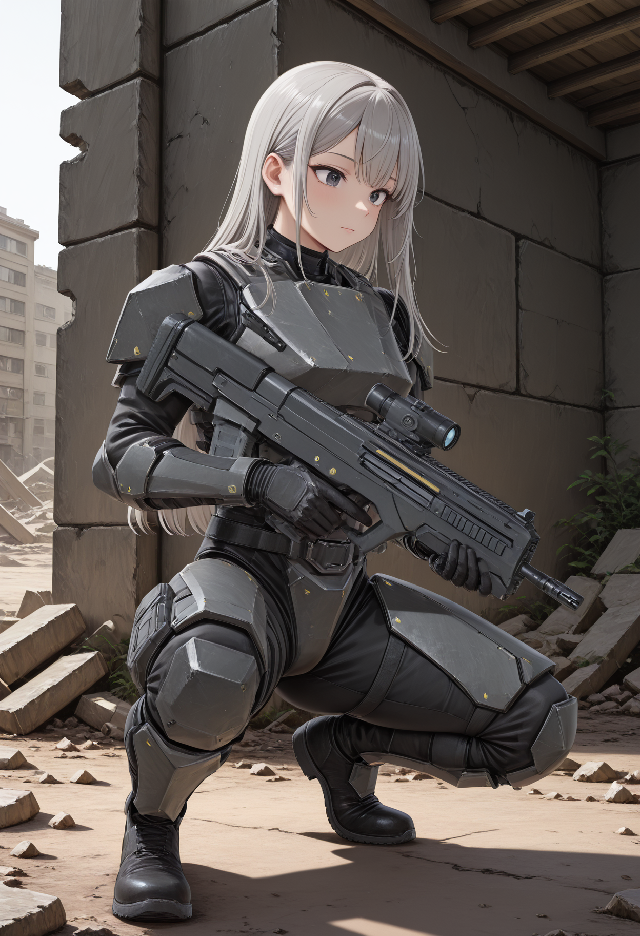 rs67nullcipher, military uniform, cuirass, shoulder armor, bracer, gloves, belt, thigh armor, shin guards, boots, yellow triangles on armor,
