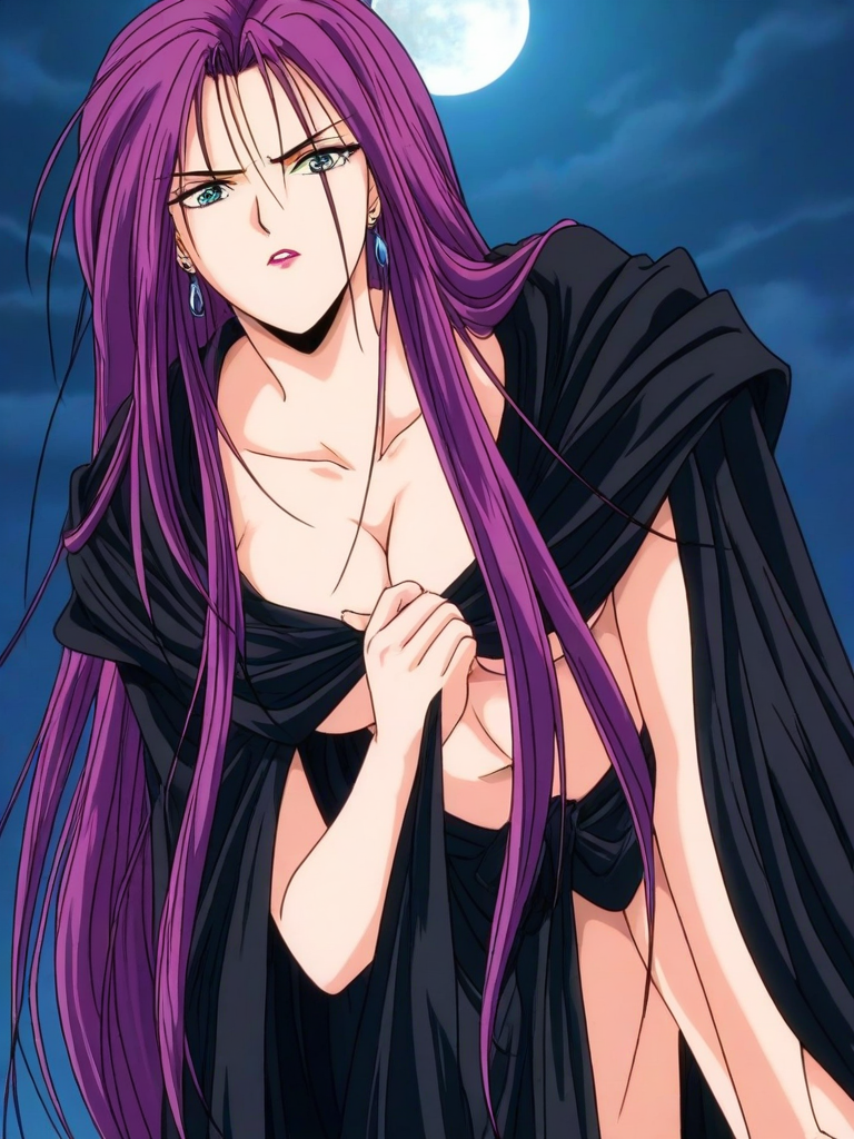 Soi, 1girl, solo, 매우 긴 머리, 보라색 머리, 귀걸이, 립스틱, 큰 가슴,