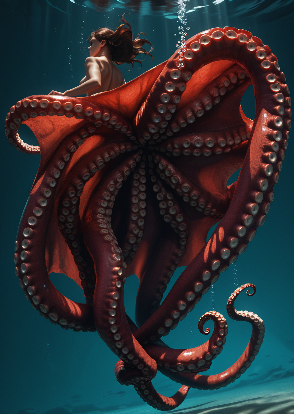 octopus scylla, *color*/*size* tentacles, *color* suction cups, webbed tentacles.