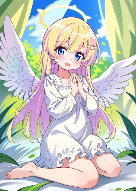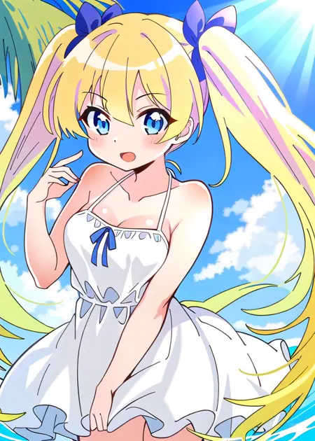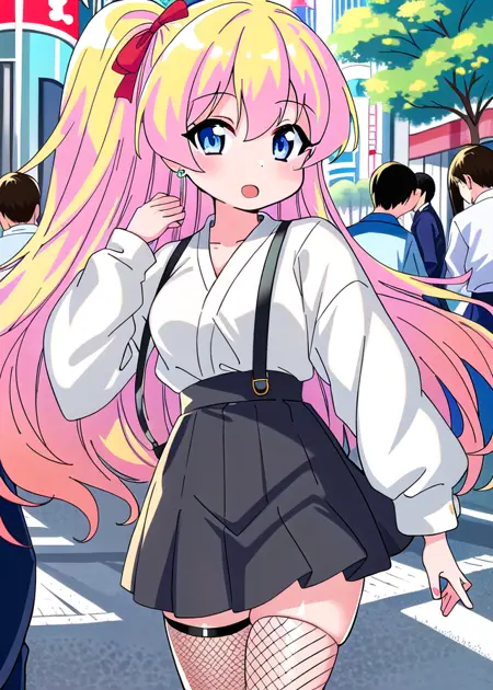 需要像动漫里那样提示她 xD,但你可以给她穿任何衣服,有时Mesousa(兔子)会出现,可以尝试提示,不过我没测试过,数据集中有这个元素;如果你遇到兔耳问题,我甚至开始觉得连触发词都不需要了,不过没关系,她正常的双马尾也可以。