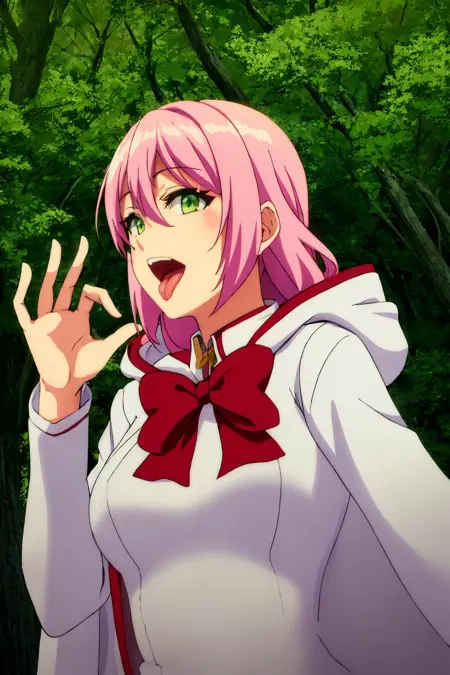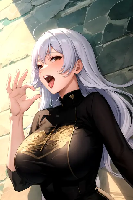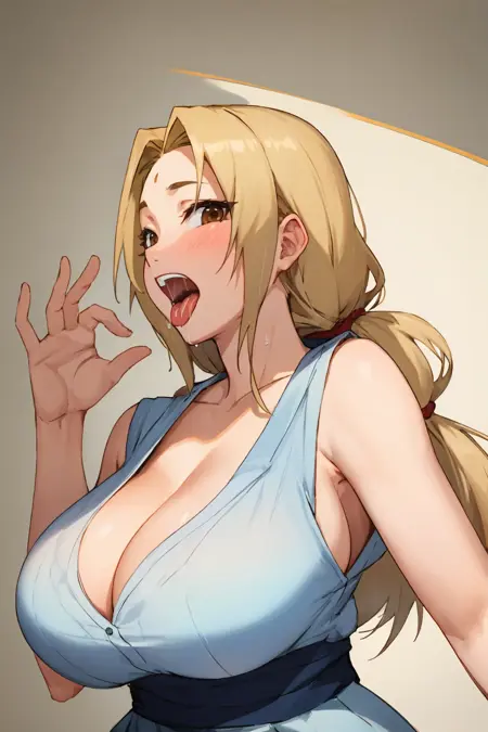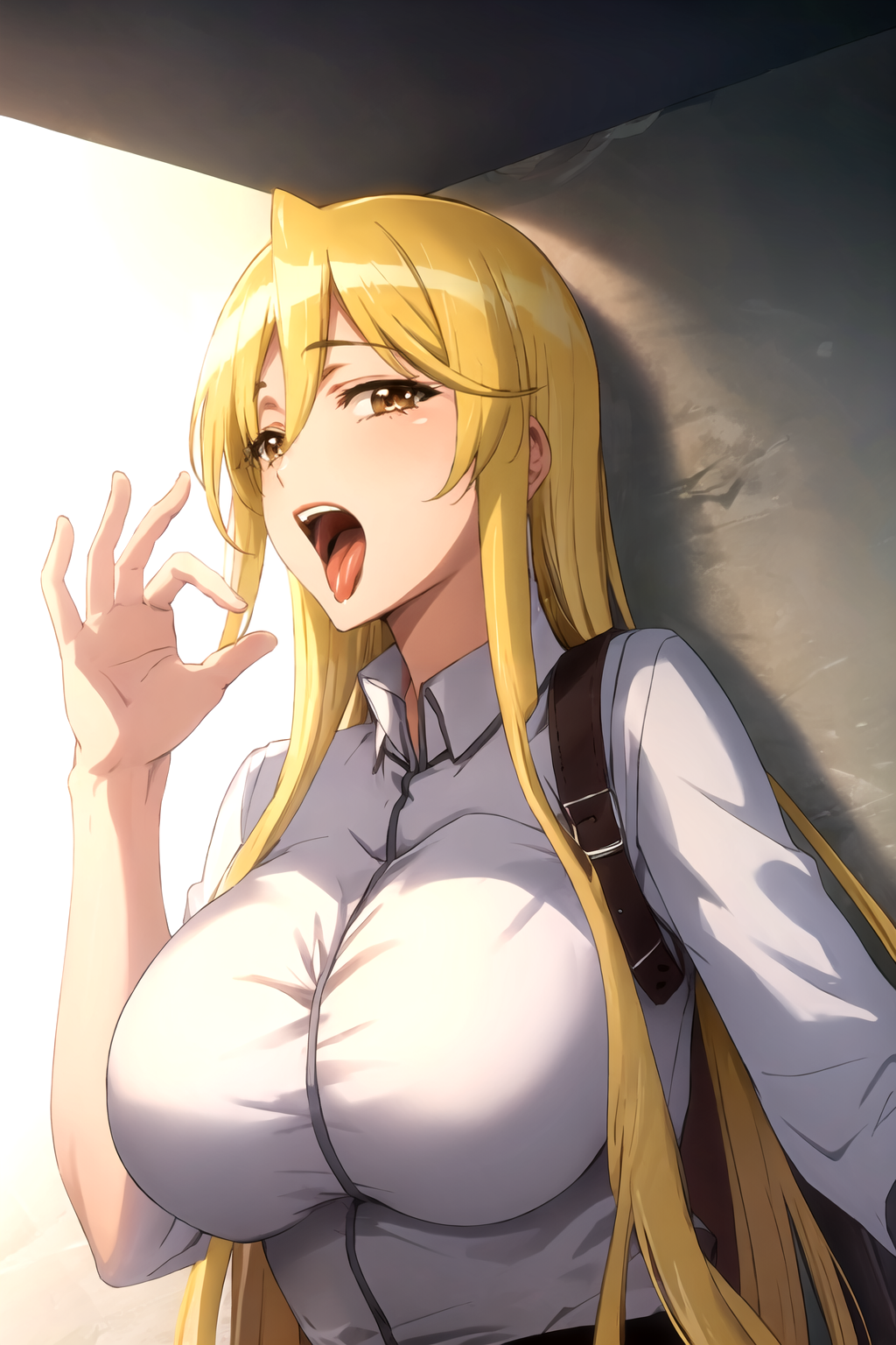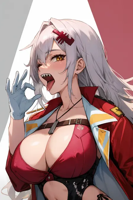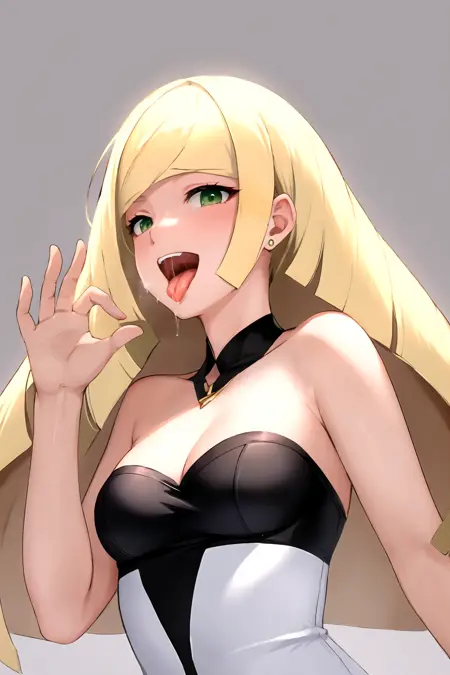 Main: 1girl, fellatio_gesture, looking_at_viewer, open_mouth, saliva, solo, tongue, tongue_out, upper_body, happy, standing