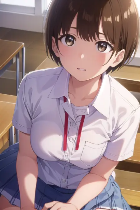 chihiro kobayashi, short hair, brown hair, (brown eyes:1.5),
