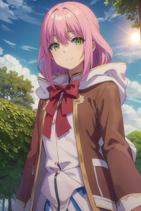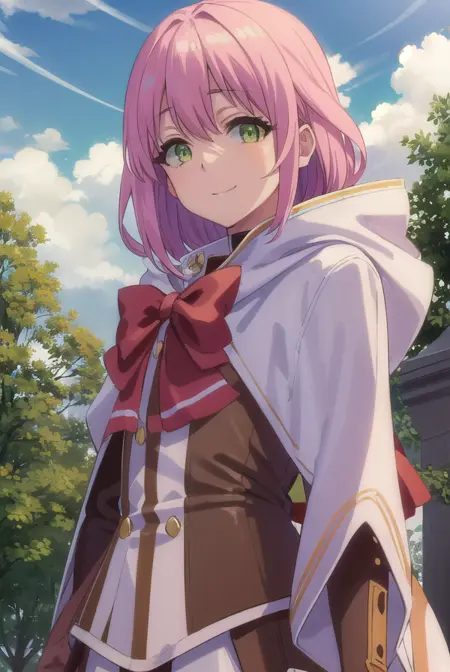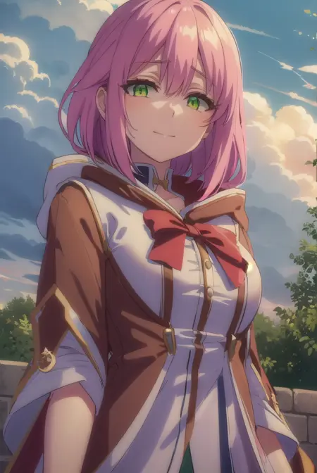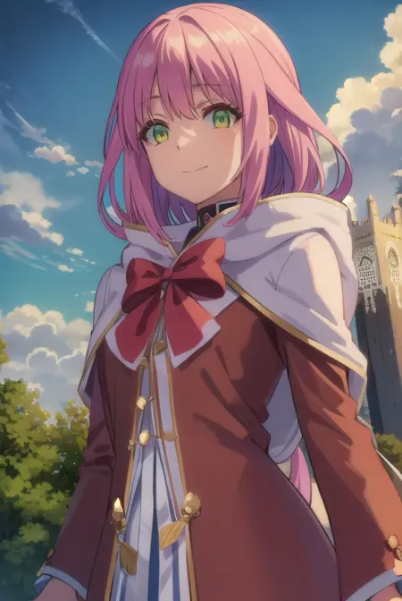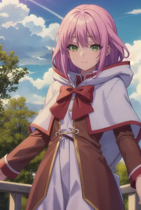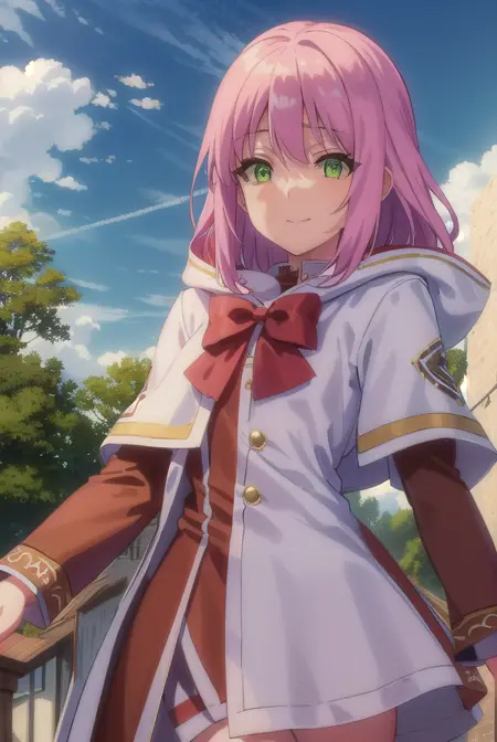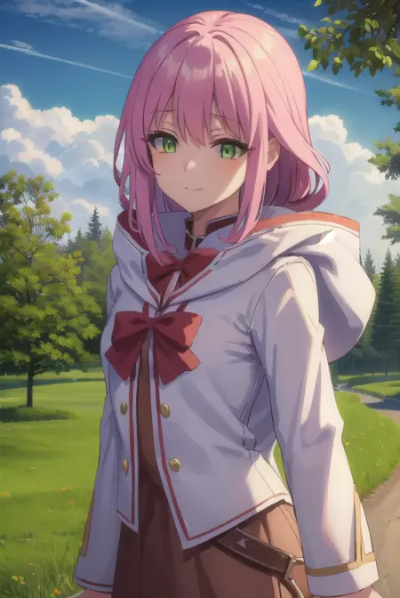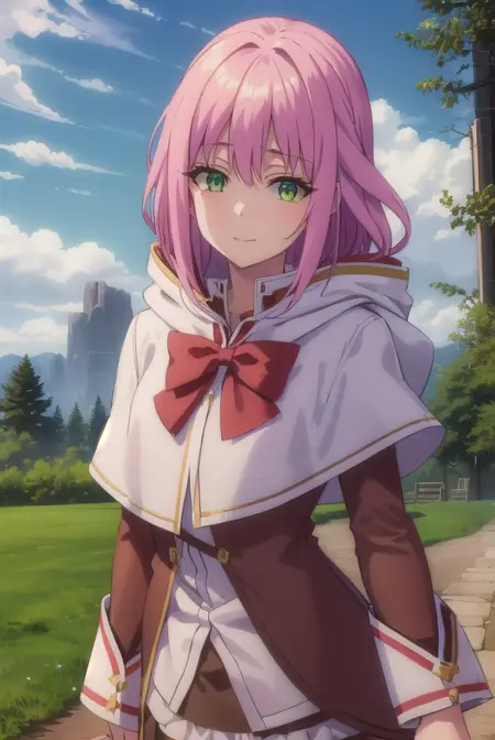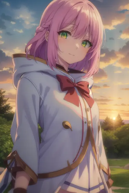 norn clatalissa jioral、長い髪、目の間に髪、(緑の目:1.5)、ピンクの髪、