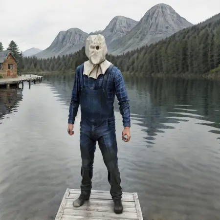 파란 달 요일 13편 2부, 3부의 현실적인 잭슨 푸리헤스의 외모를 모방하려는 LoRA입니다.