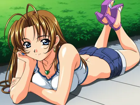 Reiko, solo, 长发, 棕发, 蓝眼, 饰品, 天线发, 大胸, 指甲油, 耳环, 2000年代风格, 动画着色,