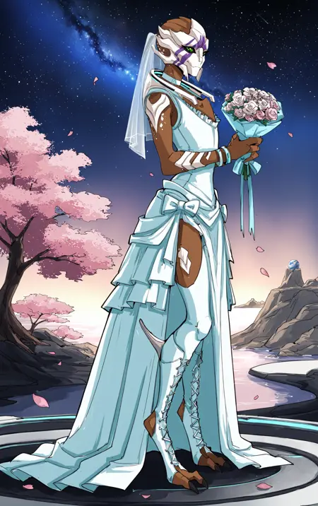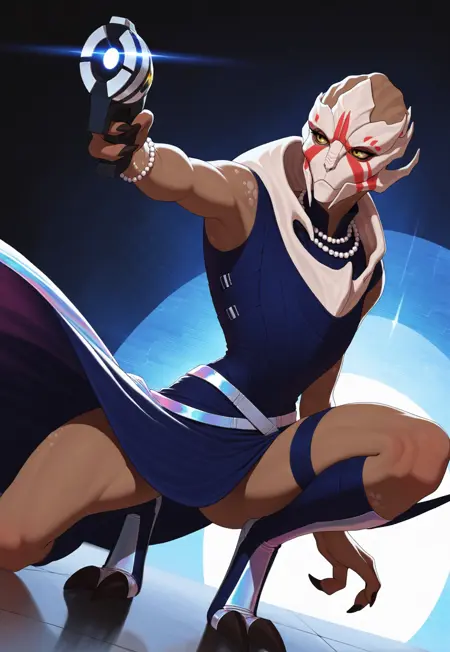 특별한 트리거 단어는 없음. 단순히 turian, female, alien, mass effect 태그를 사용할 것.