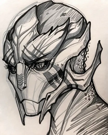 Doesn't have any special trigger word, just use tags turian, female, alien, mass effect