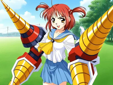 드릴 소녀 스파이럴 나미의 영원한 라이벌 로보트 도우, 메구미 챈의 LoRA입니다. illustrious_XL을 업데이트했습니다. 트리거 단어를 변경했습니다.