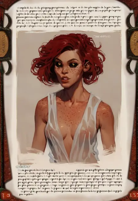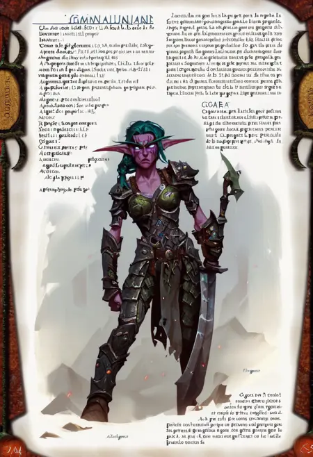 PonyXL 버전 - 강도 1.2 사용, lora:ADD_3.5_Monster_Manual_PonyXL:1.2 텍스트, 캐릭터 이름, character_profile 트리거 단어 사용.