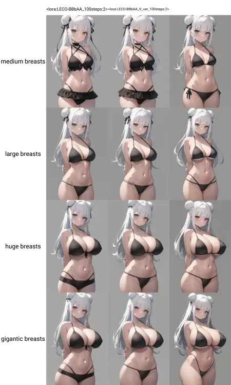 つまり、**「large breasts」**のような誘惑的な言葉を入力すると、キャラクターの年齢も上がってしまうような気がするのです。