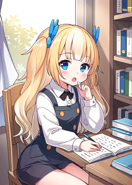 トリガー単語は彼女の普段の外見を再現するためだけのものであり、「長い髪、金髪、白髪」とだけ設定して、好きな服や場所で彼女を描くことができます。