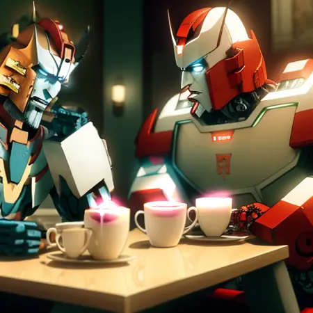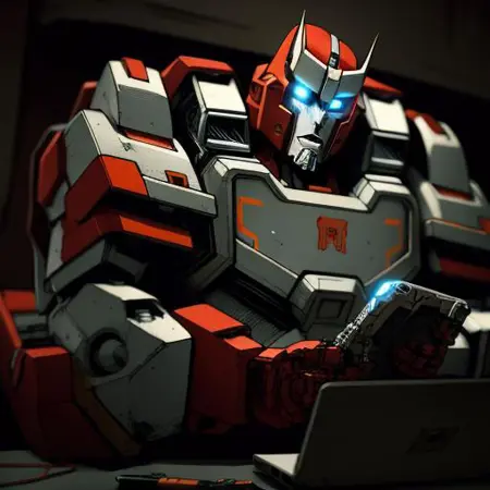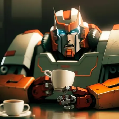 其他提示:无人类、机甲、发光的眼睛、汽车人、蓝色眼睛、金属皮肤