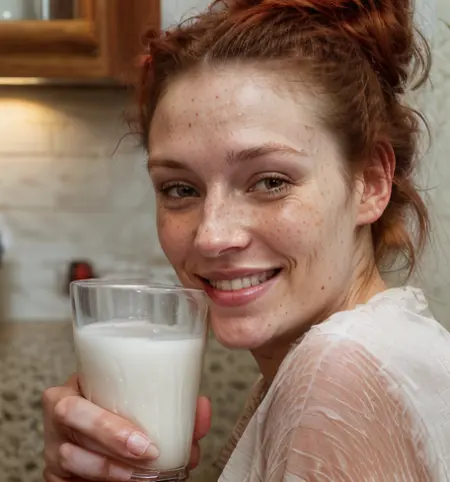 此LoRA为SD1.5添加了女性不正确喝牛奶和牛奶胡须的场景。
