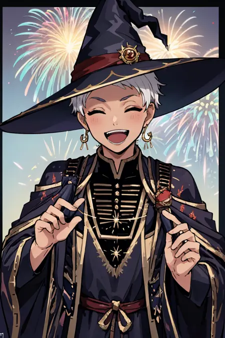 生日快乐: kalimbirthday, 深色皮肤, 女巫帽, 长袍, 长袖, 耳环