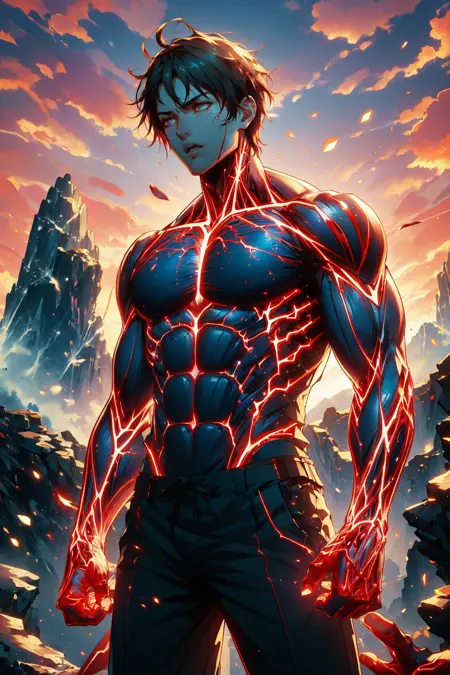 発光する赤い血管/エネルギーで生成を強化します。NAIで学習済み。強度0.8-1.0でテスト済み。