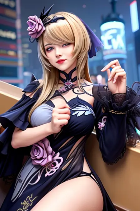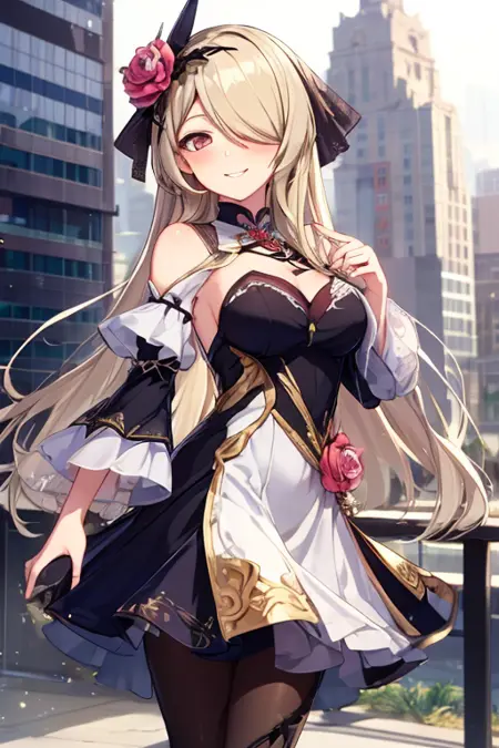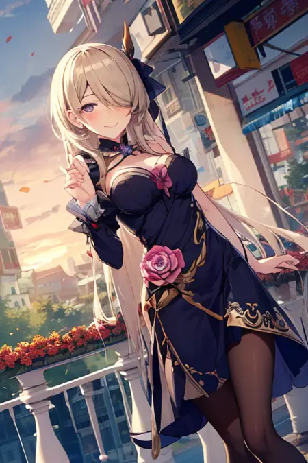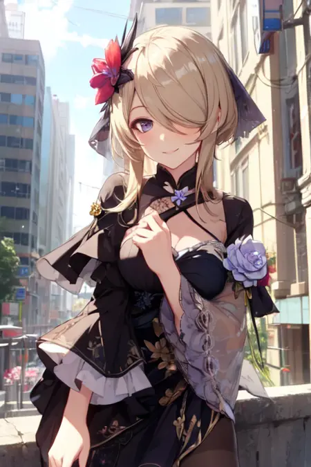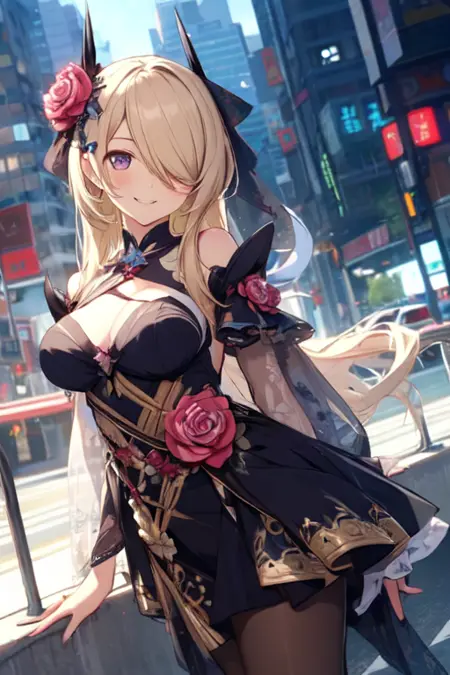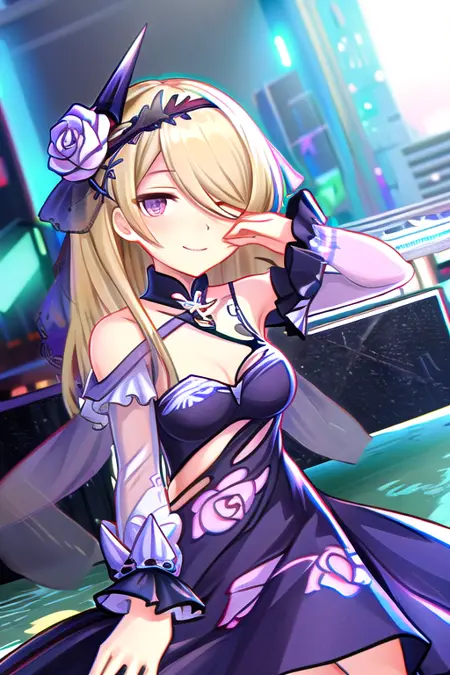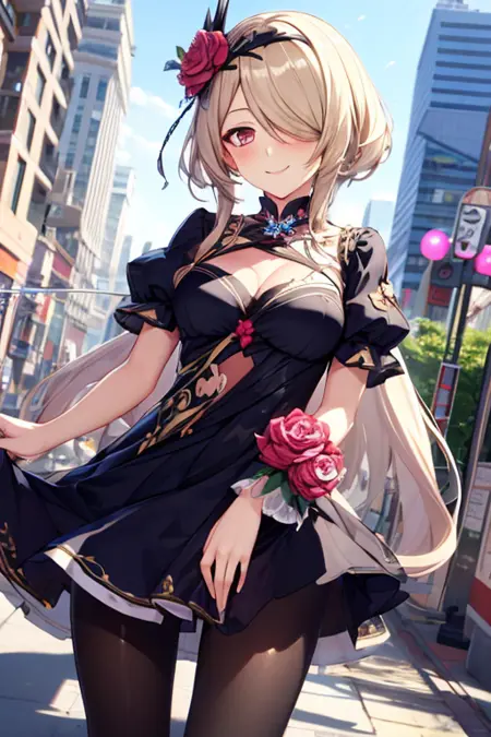 Fallen Rosemary - rita rossweisse, fallen rosemary, default, black dress, rose, flower on hair