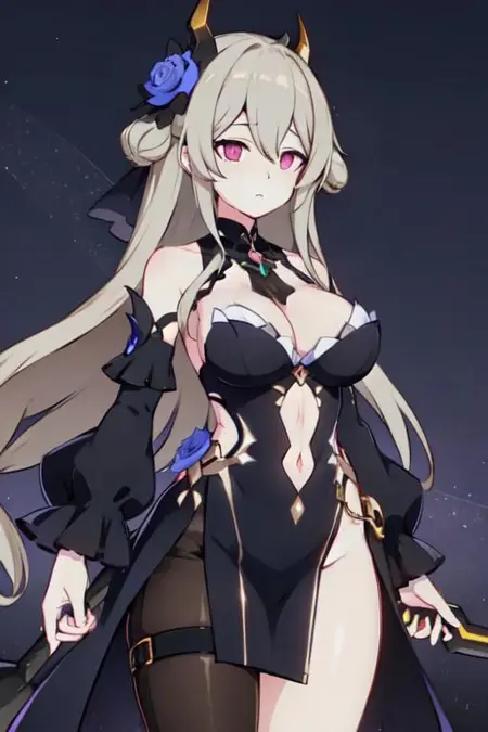 낙락 로즈마리 - rita rossweisse, fallen rosemary, default, black dress, rose, flower on hair