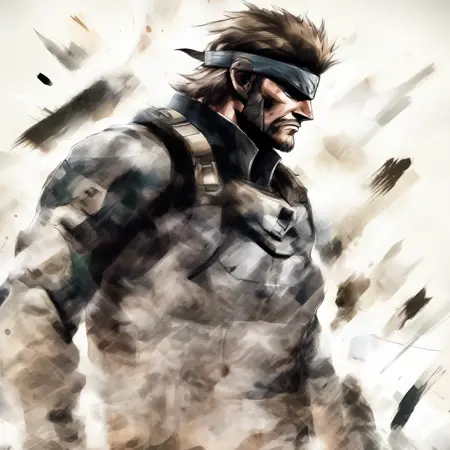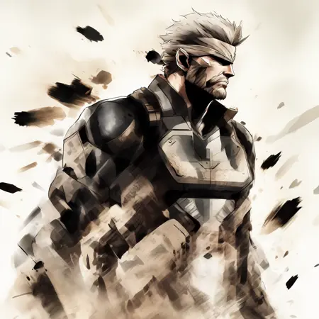 クラシカルなアートスタイルで、ビッグボス/リキッド・スネークの画像を生成