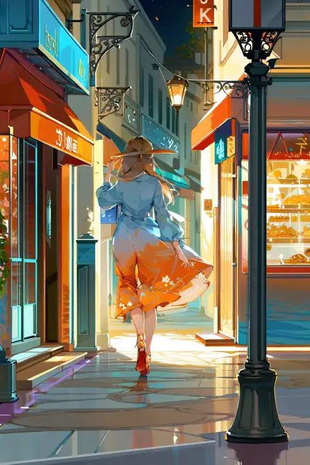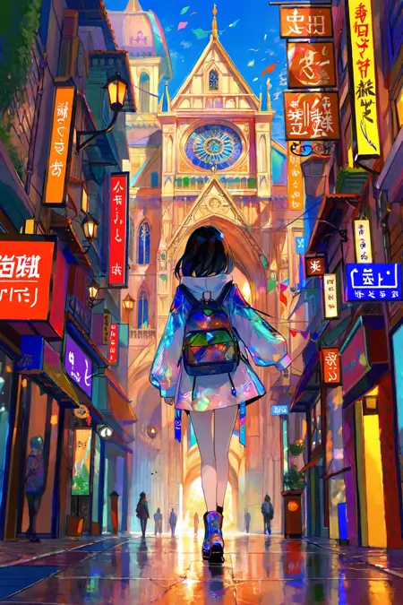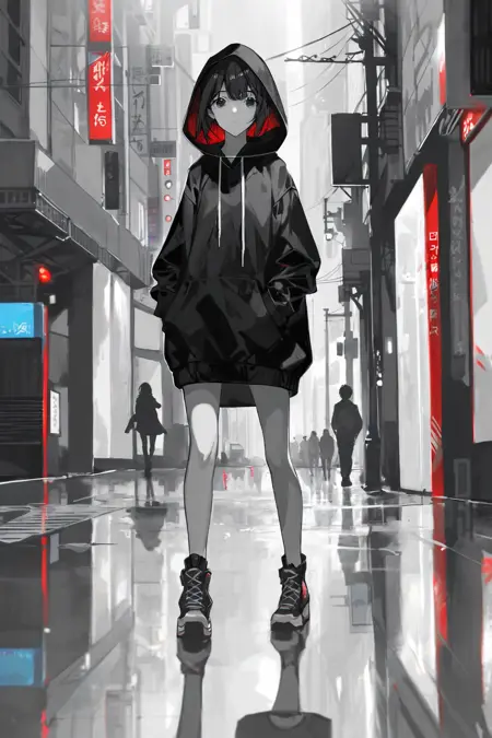 masterpiece,best quality,ultra detailed,by (___________) ,(1girl:1.2),girl walking on street, facing viewer, female focus