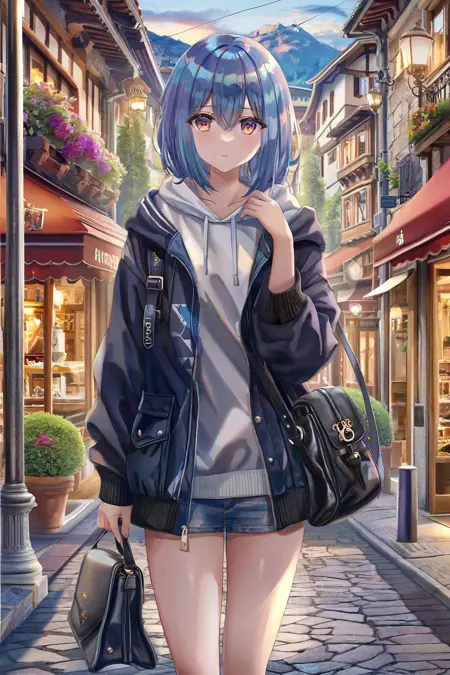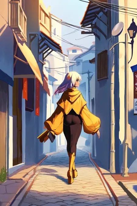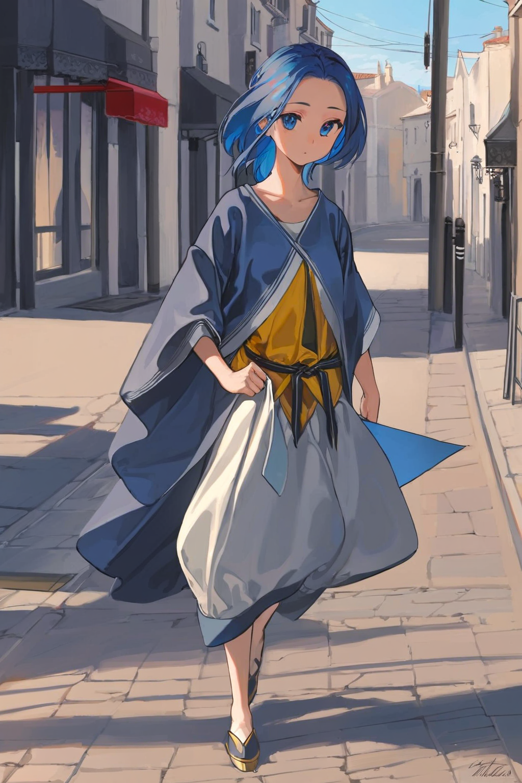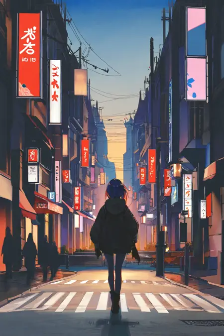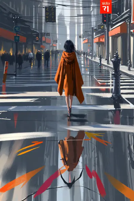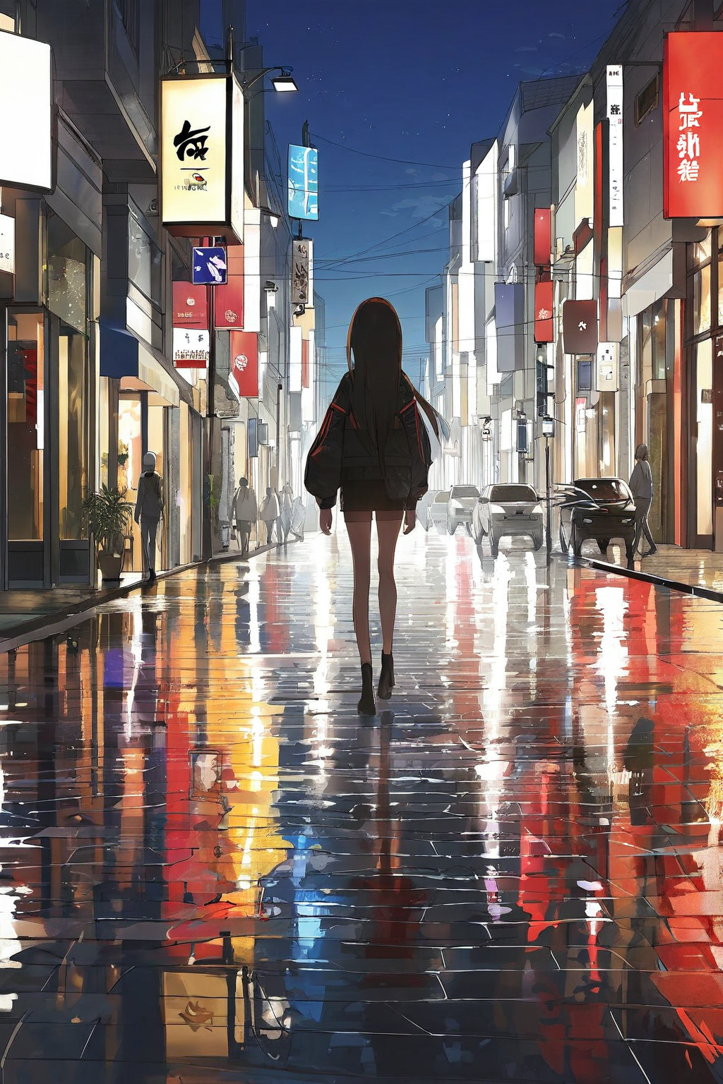 masterpiece,best quality,ultra detailed,by (___________) ,(1girl:1.2),girl walking on street, facing viewer, female focus